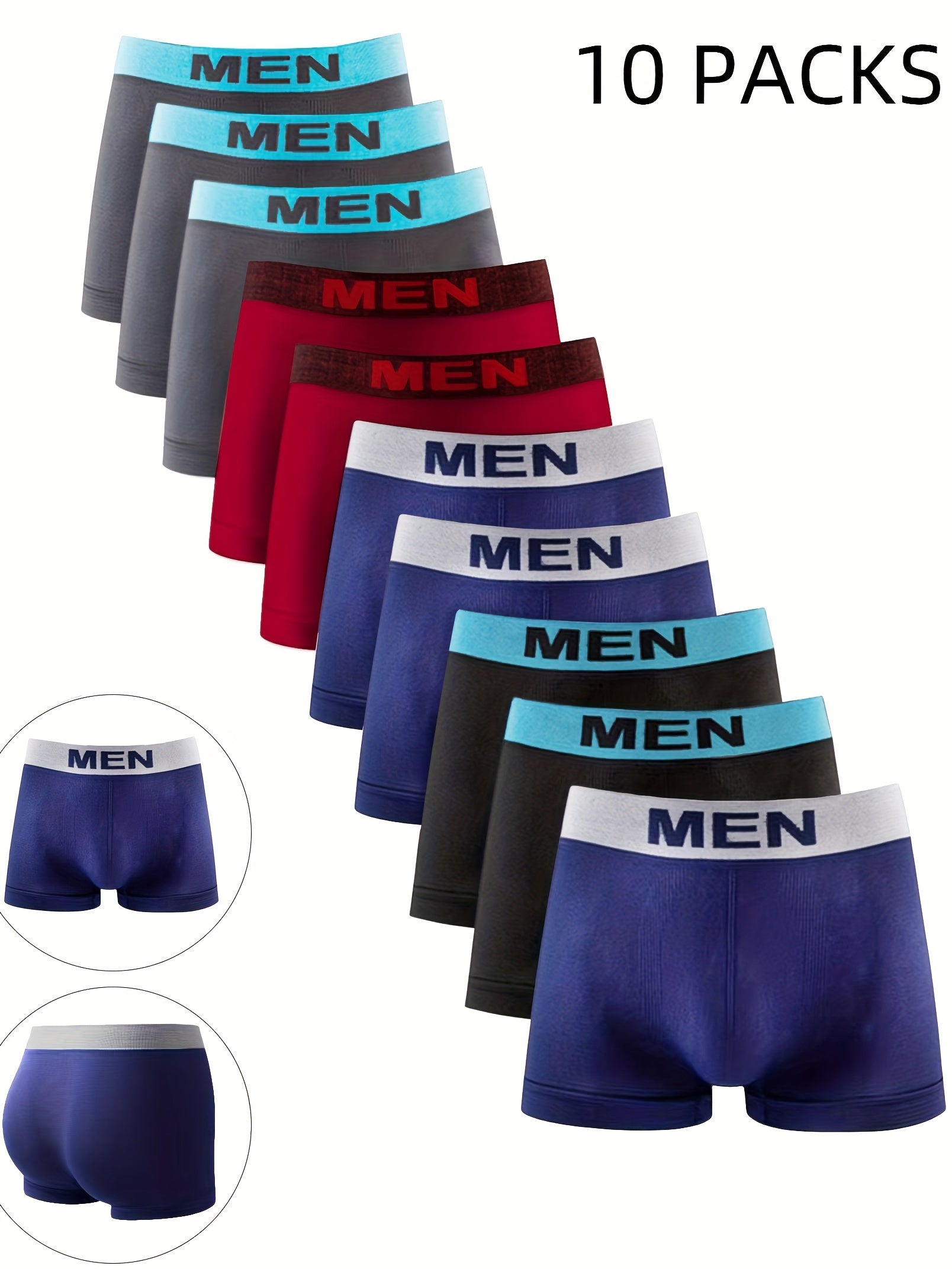 10 Pcs Men's Letter Print Seamless Boxers Briefs, Comfy & Antibacterial Underwear Set, Suitable For S/M