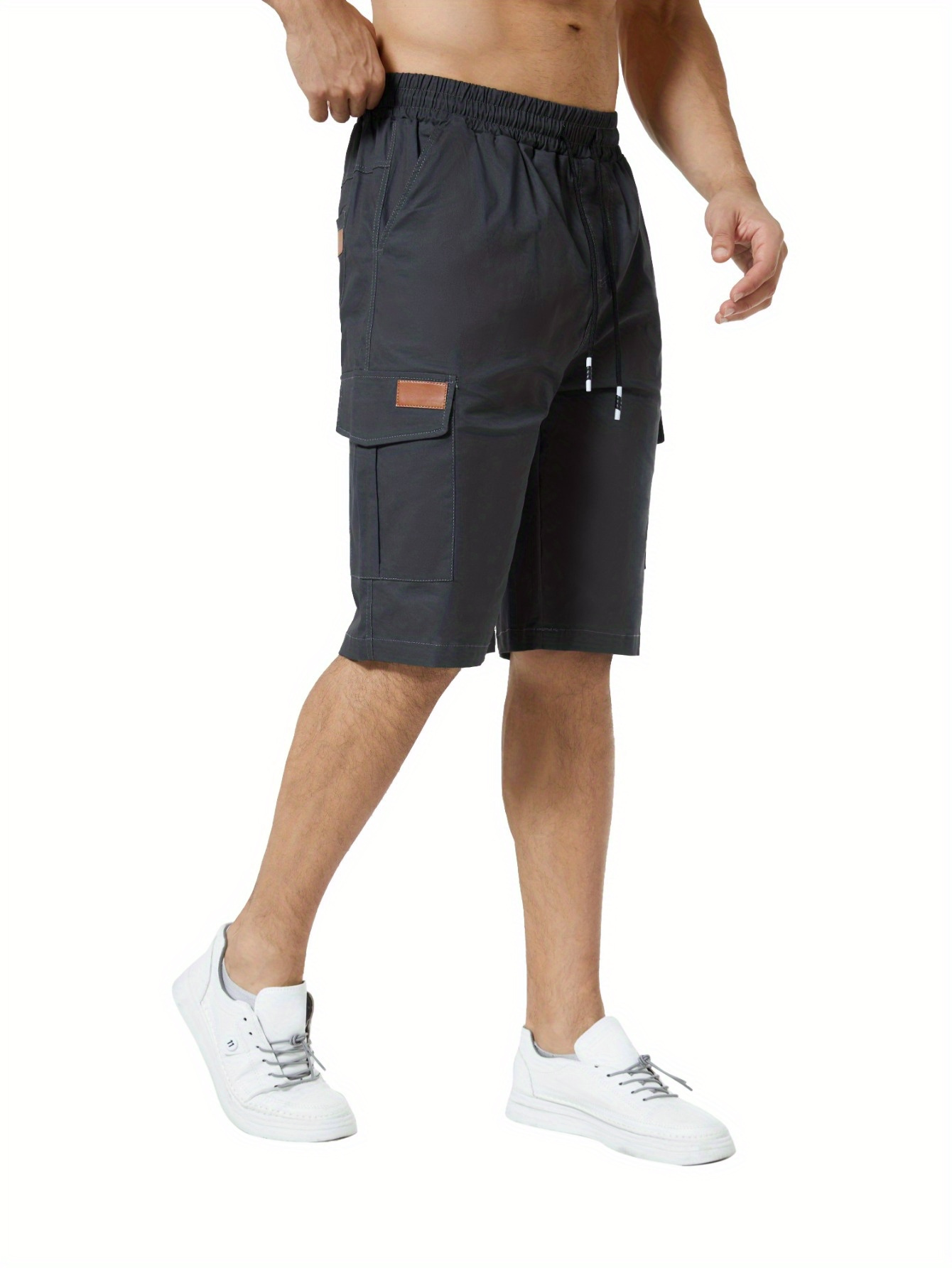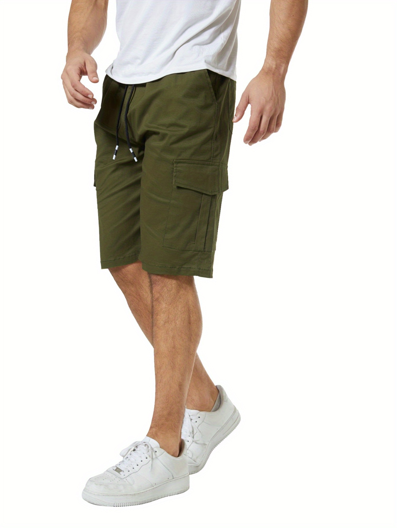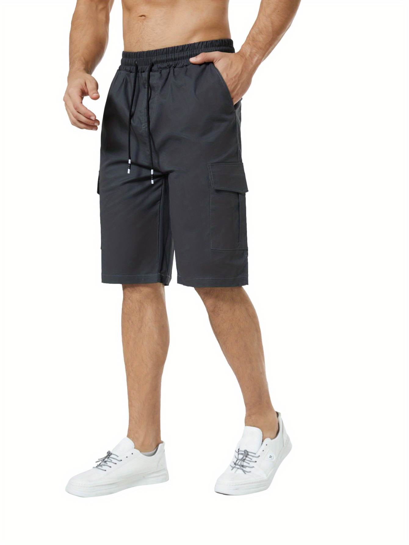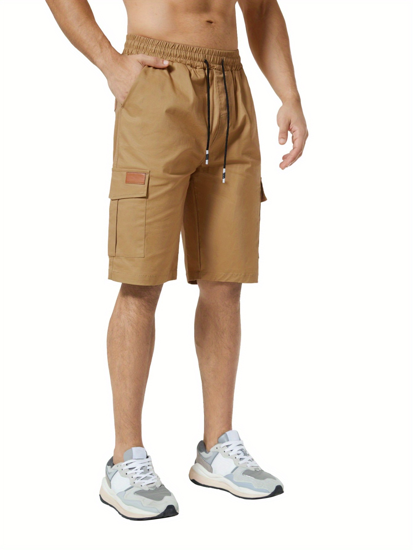 2 Pcs Men's Casual Cargo Shorts Elastic Drawstring Cotton Stretch Multiple Pockets Cargo Short