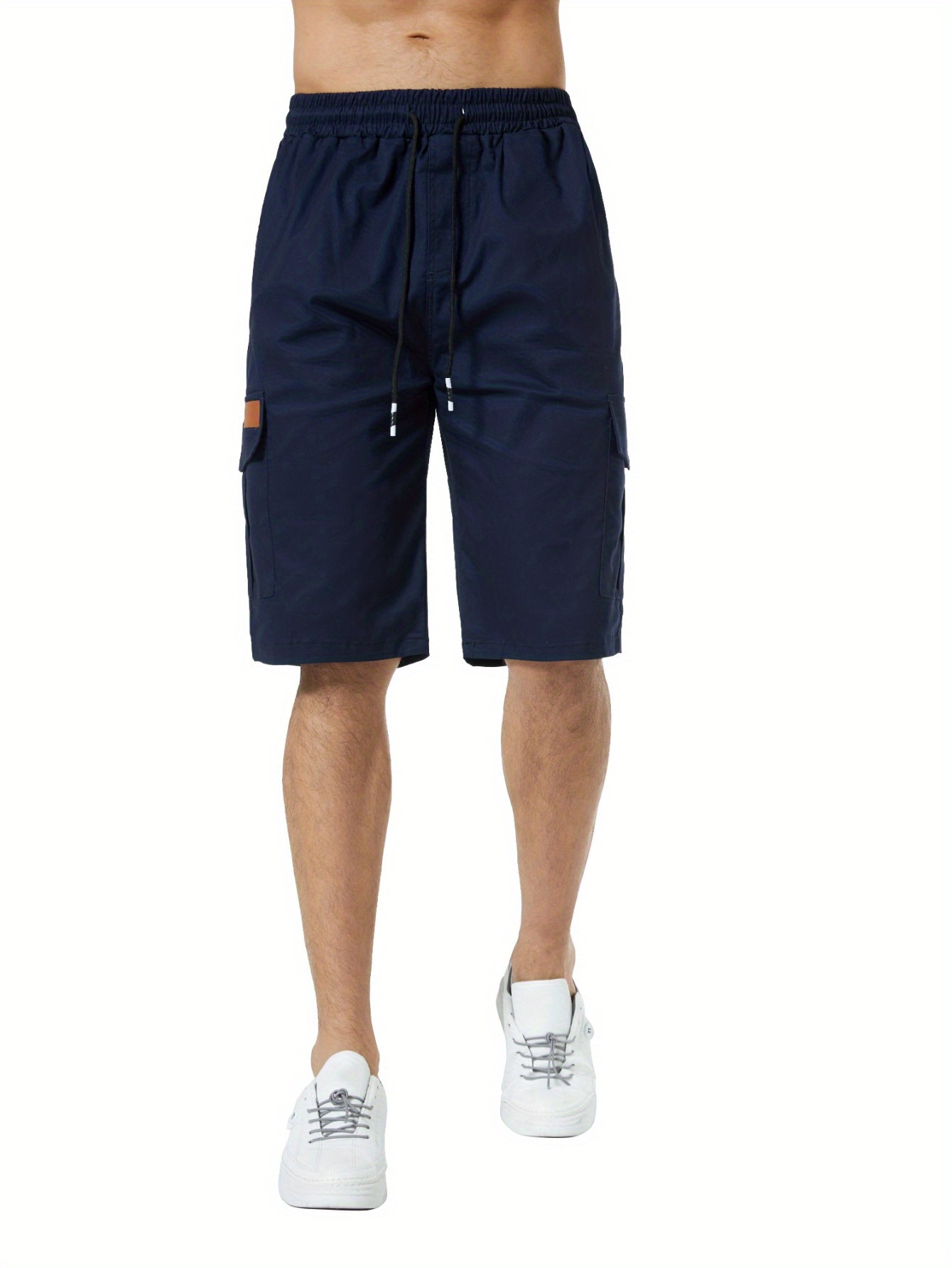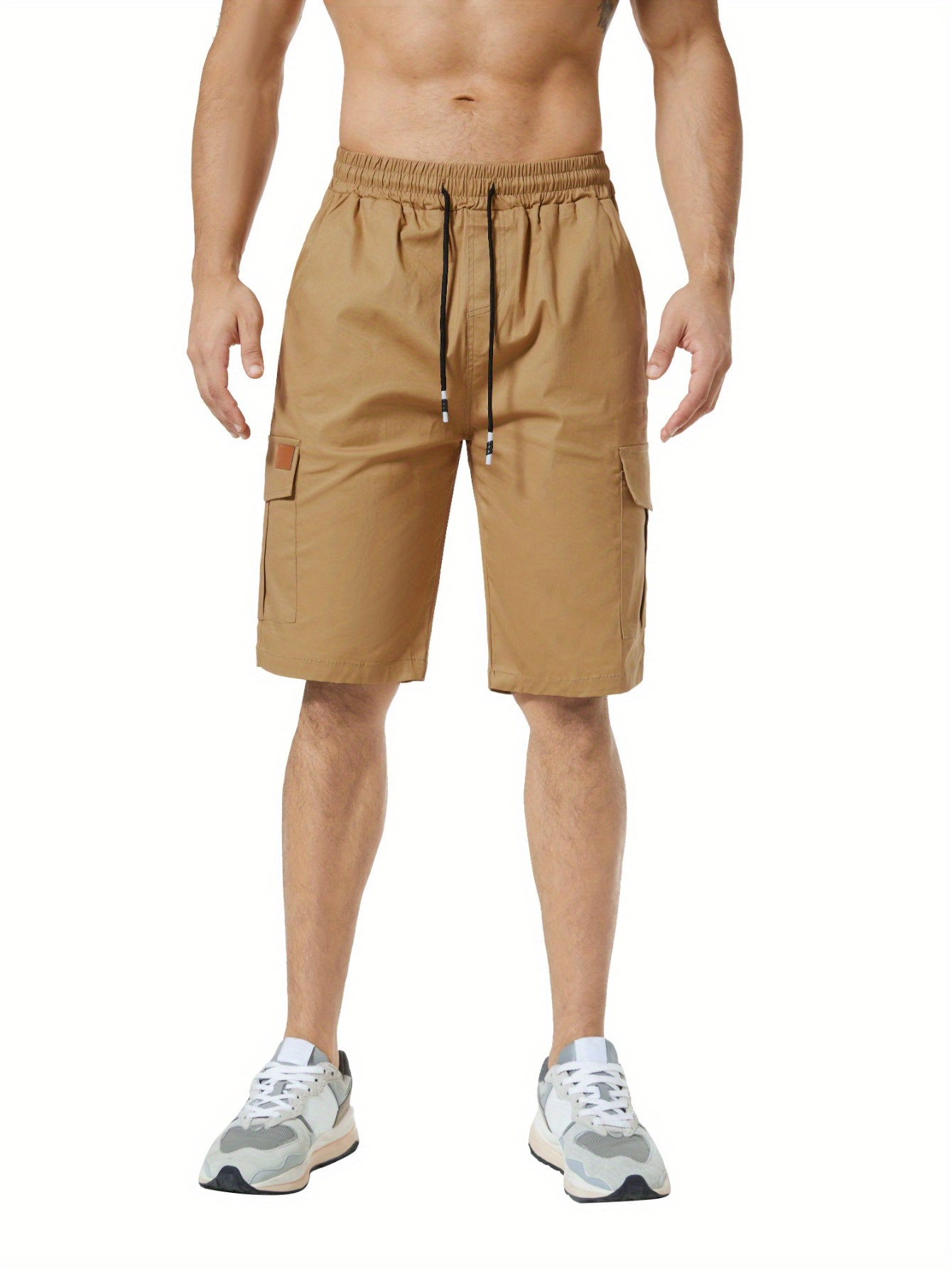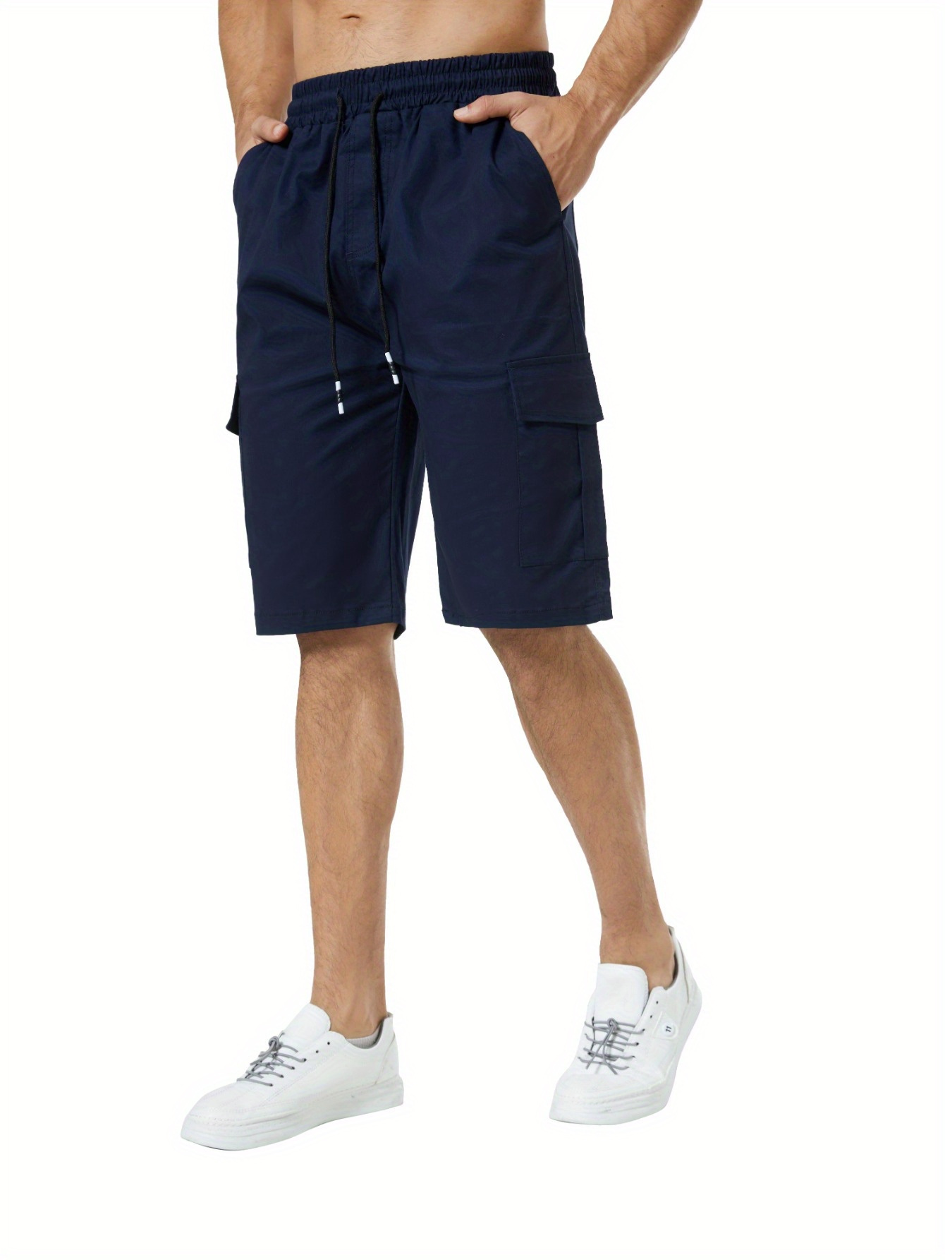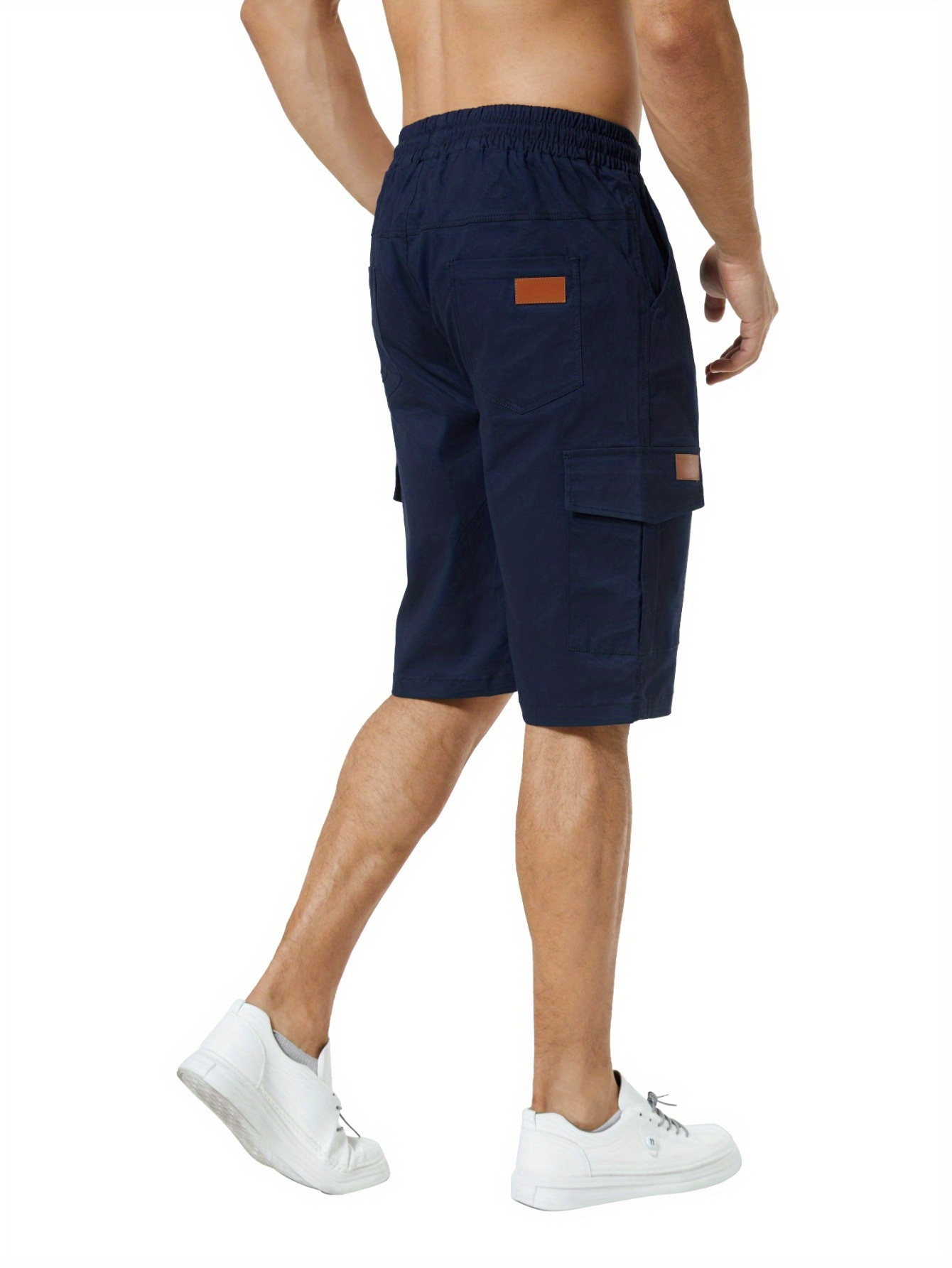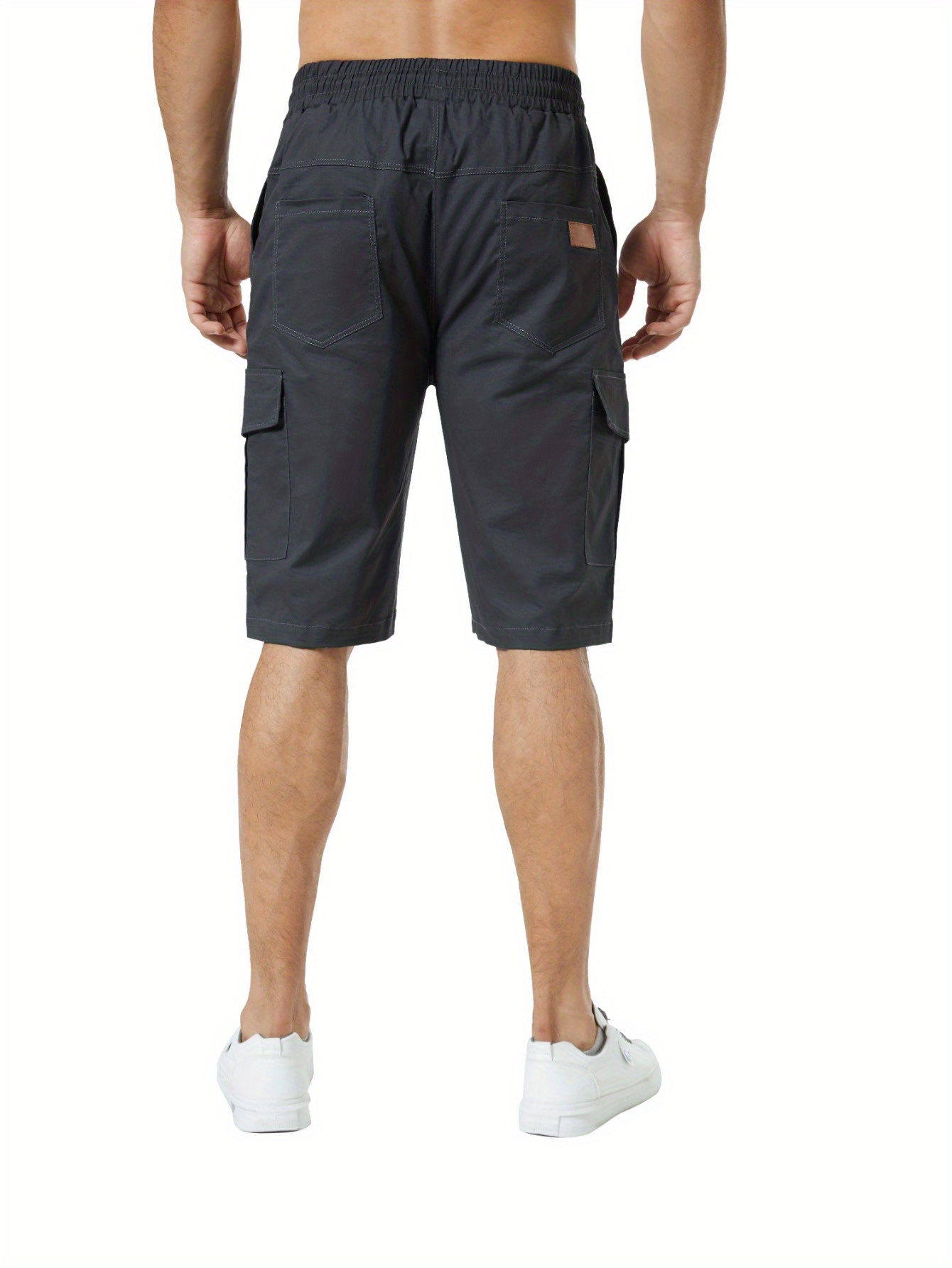 2 Pcs Men's Casual Cargo Shorts Elastic Drawstring Cotton Stretch Multiple Pockets Cargo Short