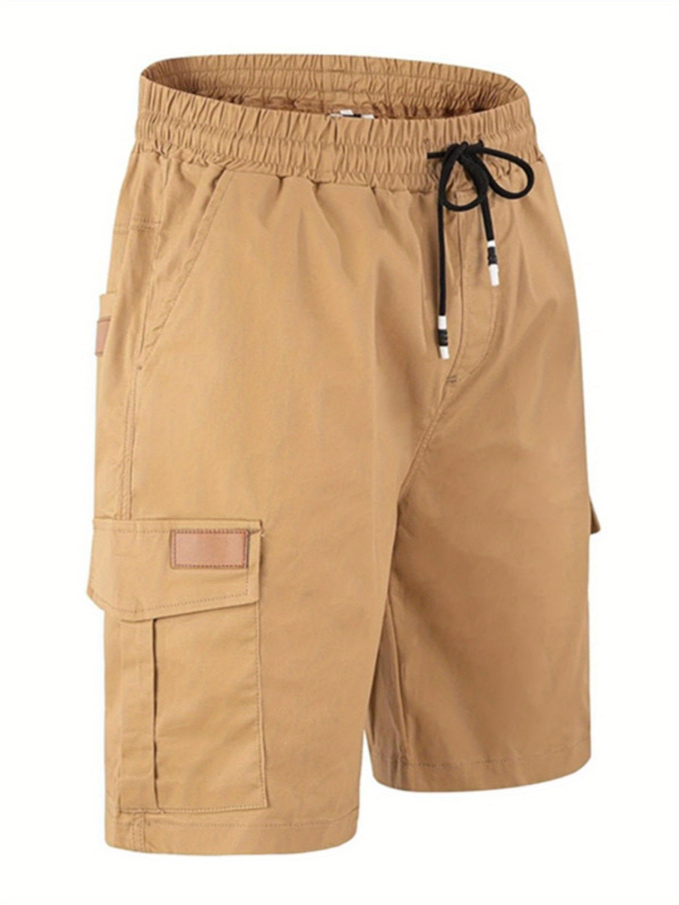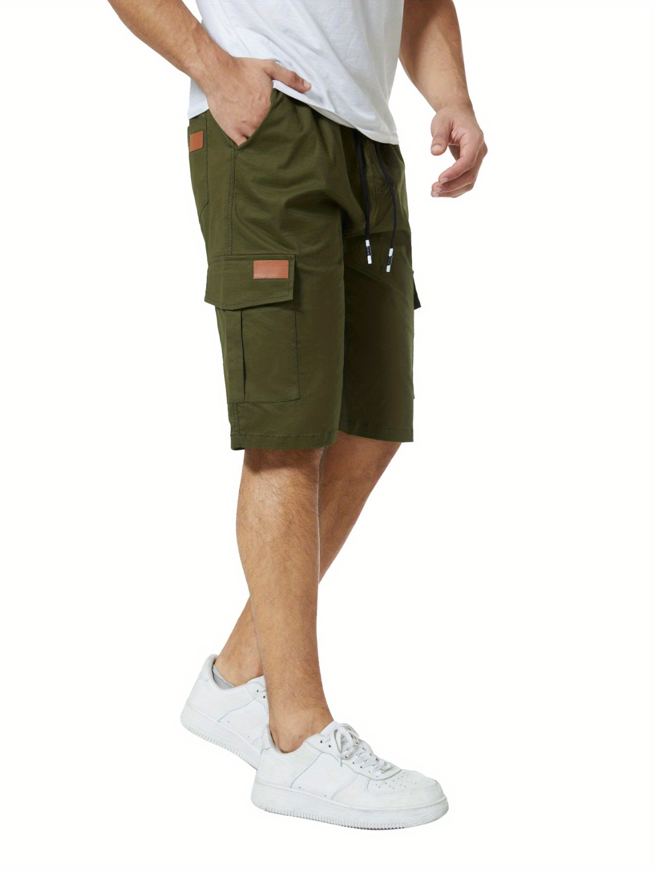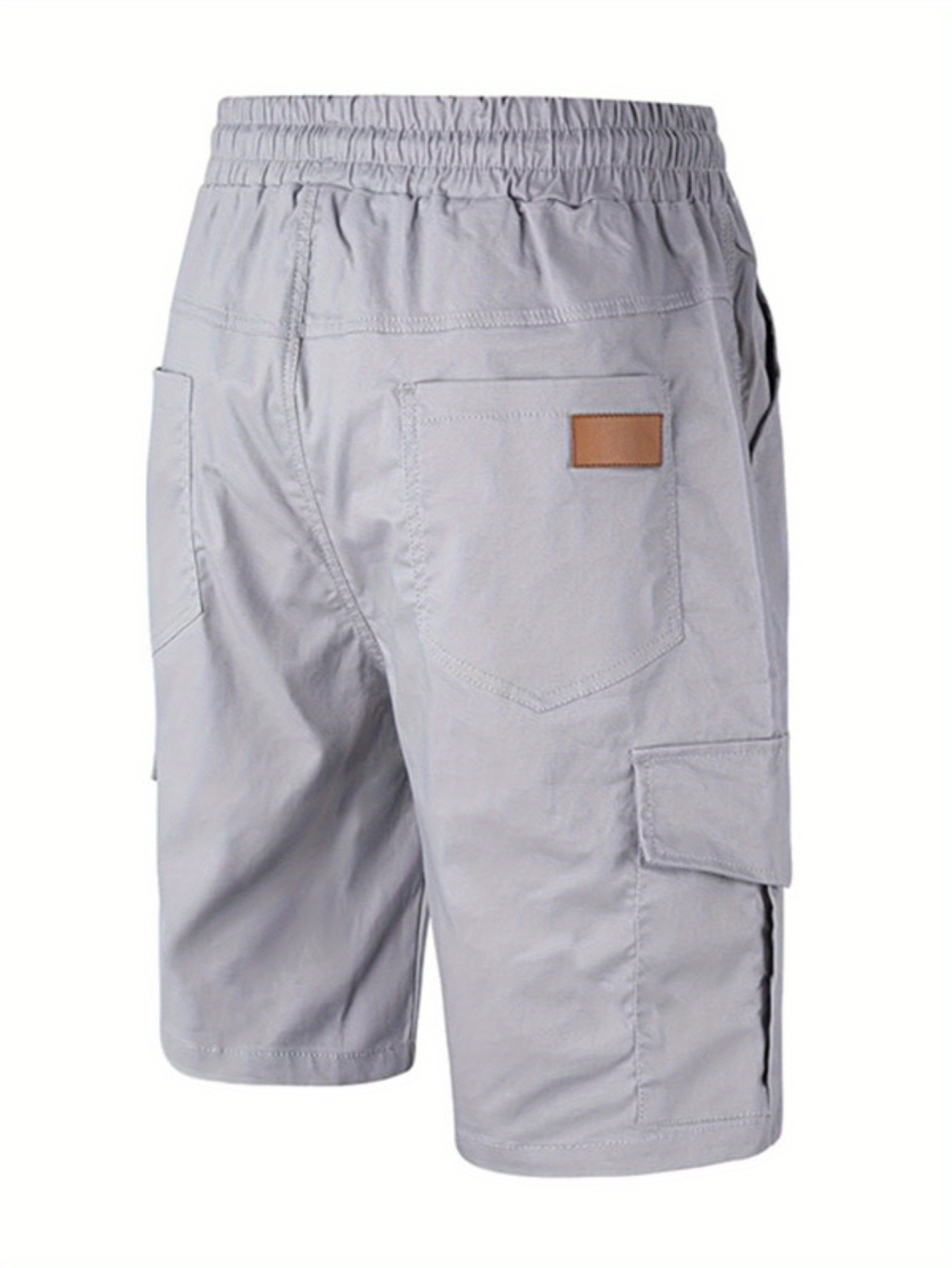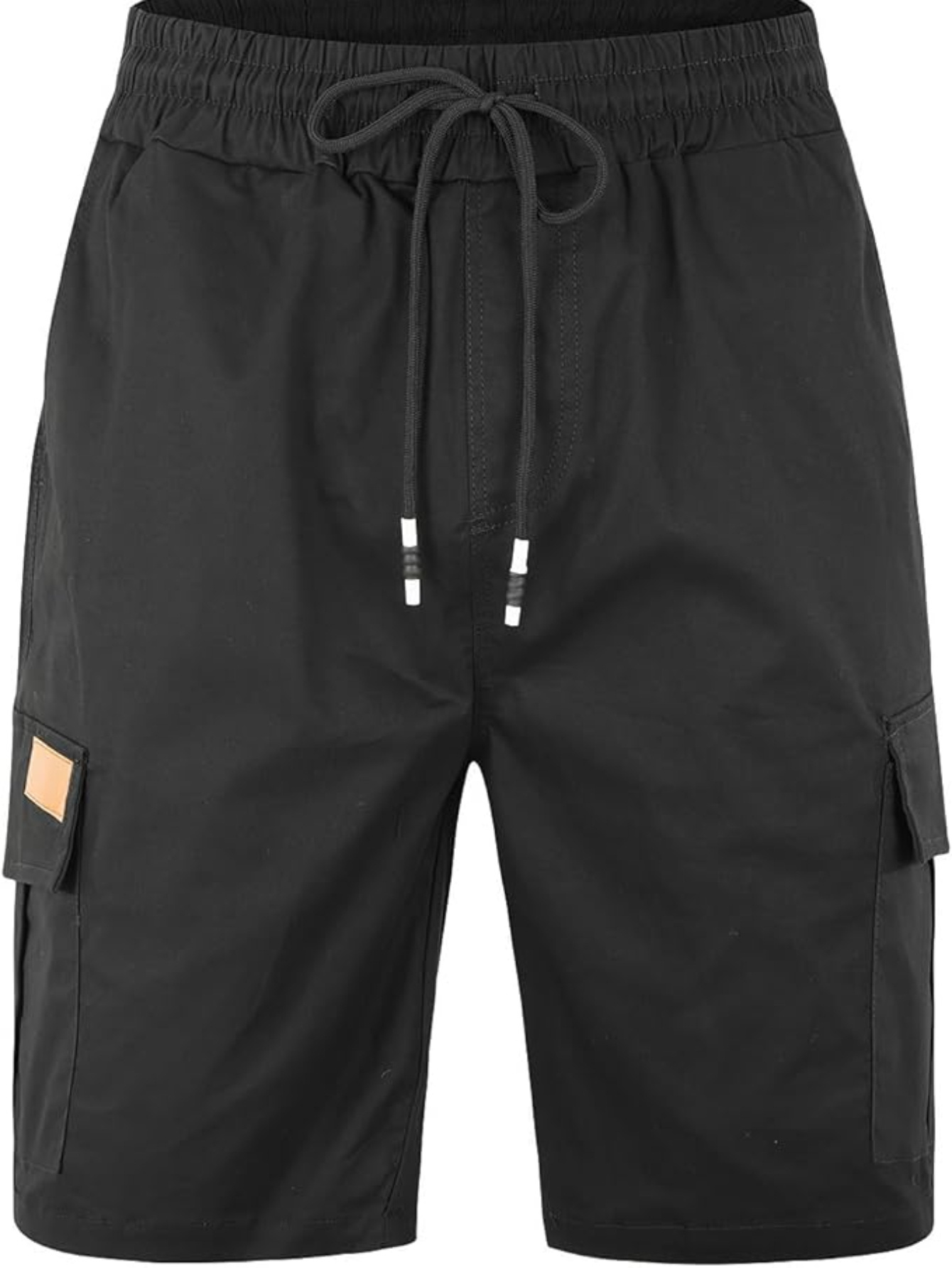 2 Pcs Men's Casual Cargo Shorts Elastic Drawstring Cotton Stretch Multiple Pockets Cargo Short
