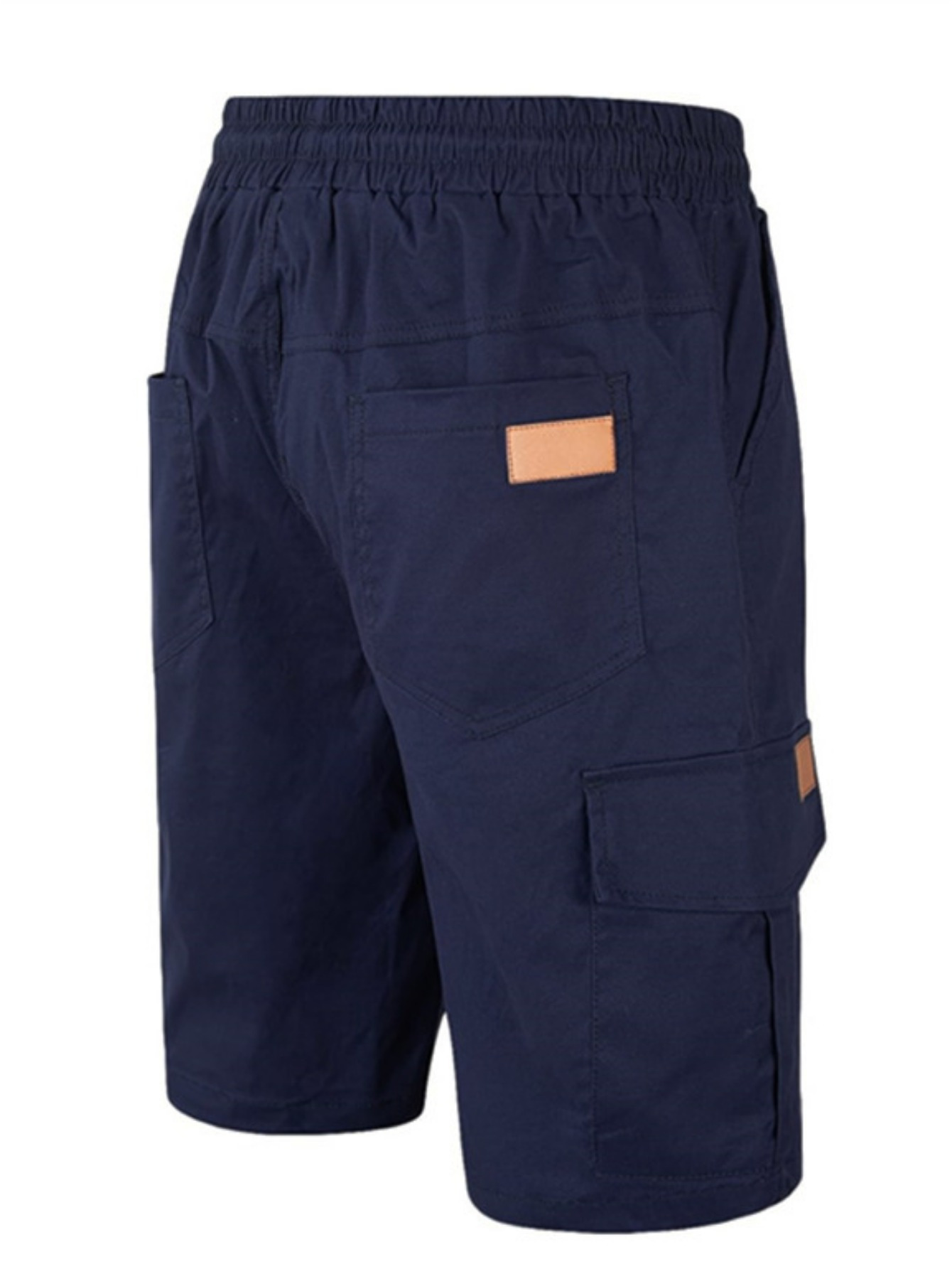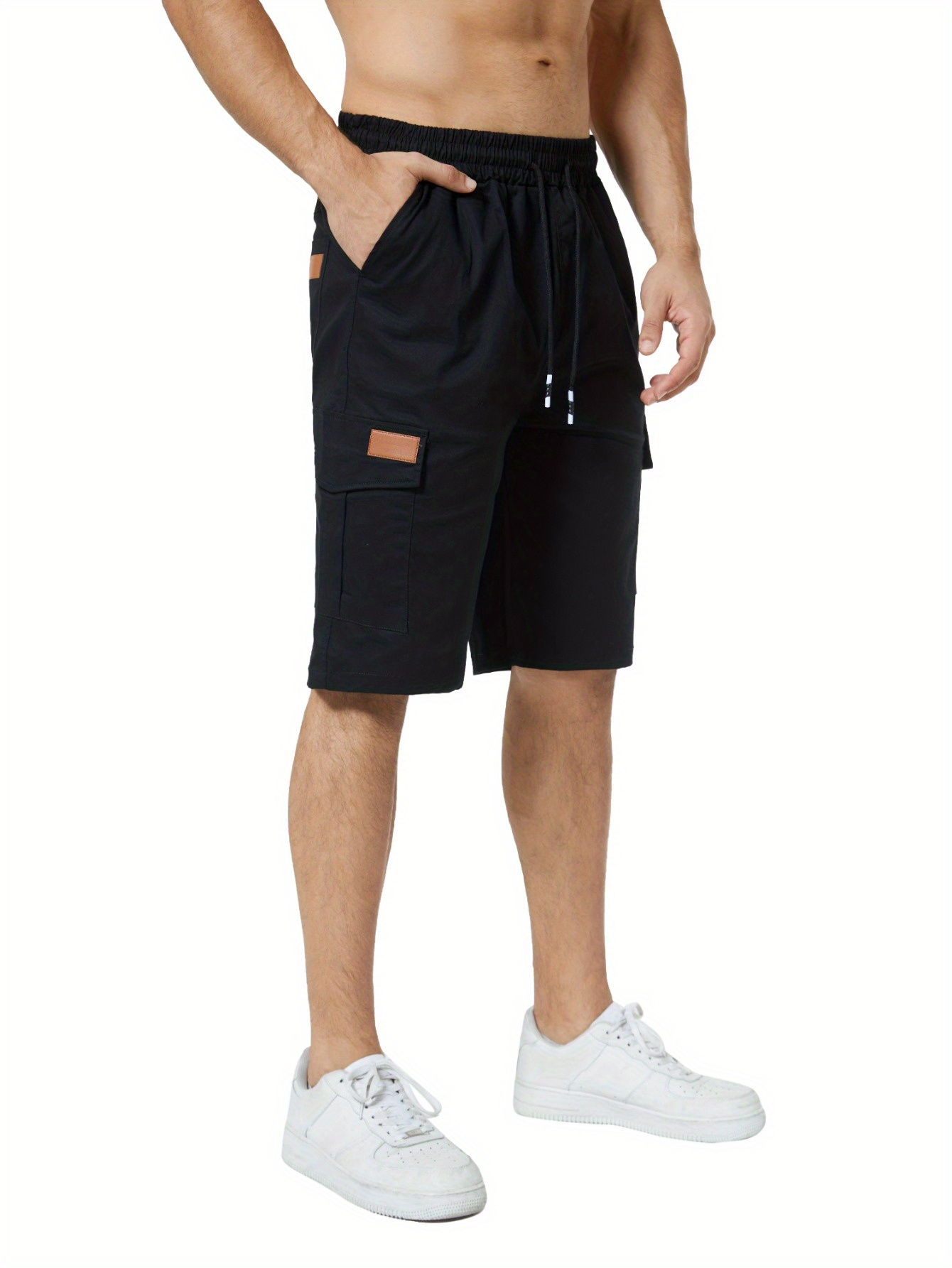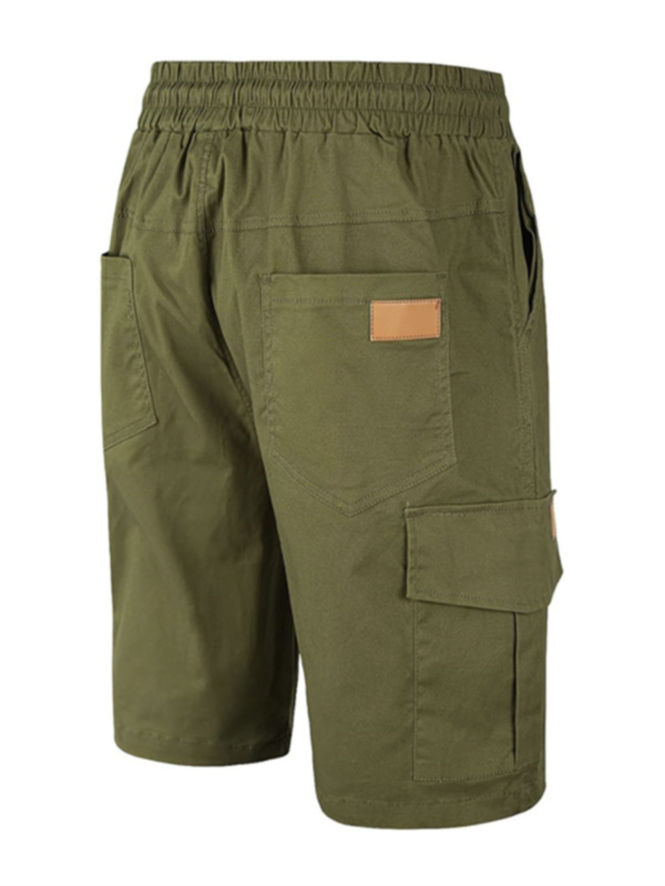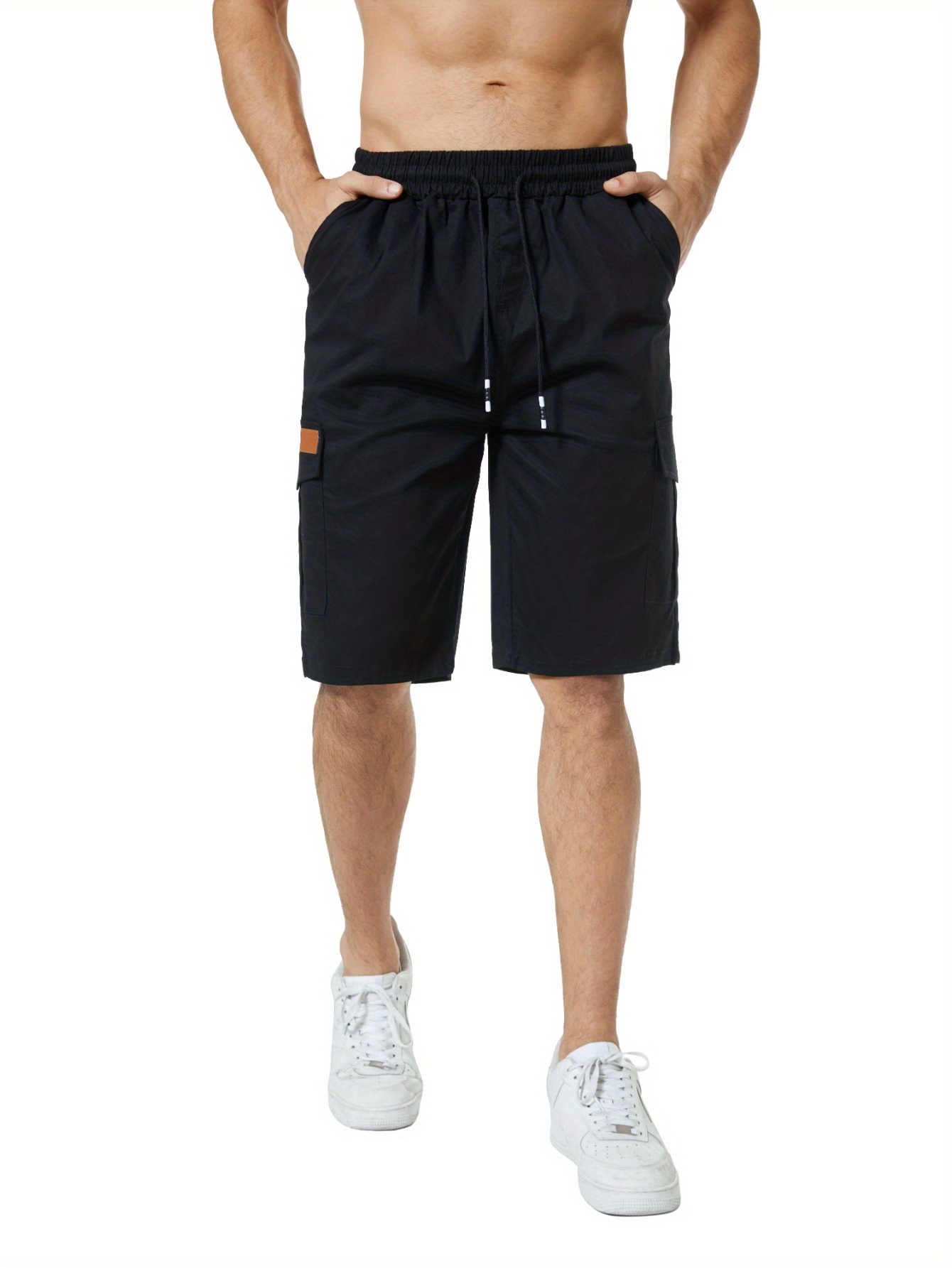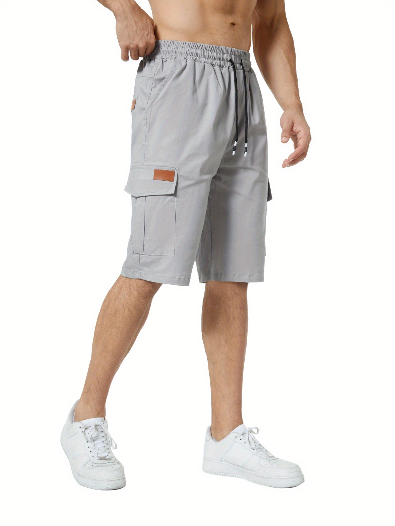 2 Pcs Men's Casual Cargo Shorts Elastic Drawstring Cotton Stretch Multiple Pockets Cargo Short