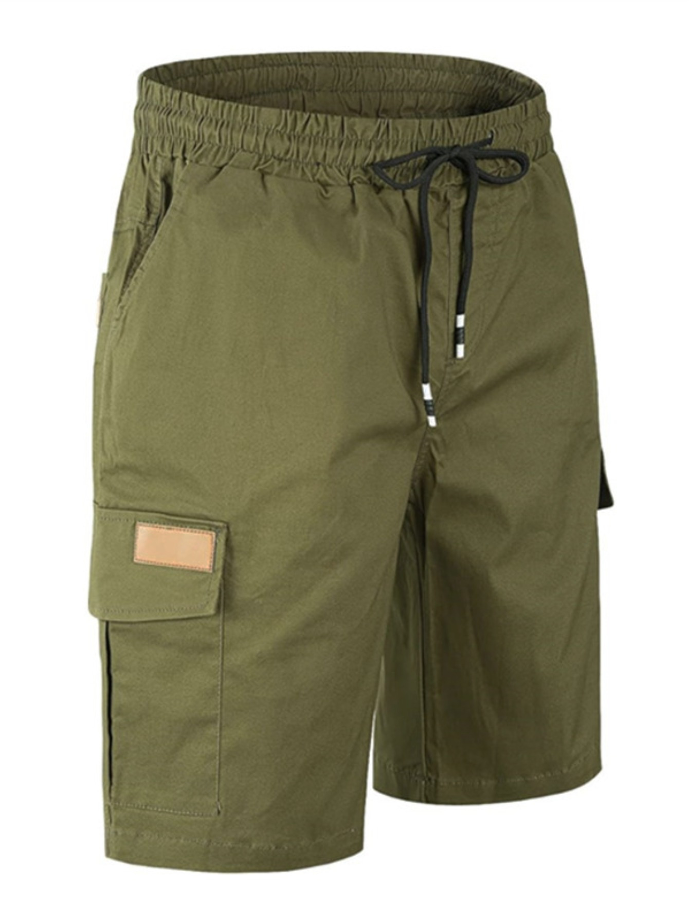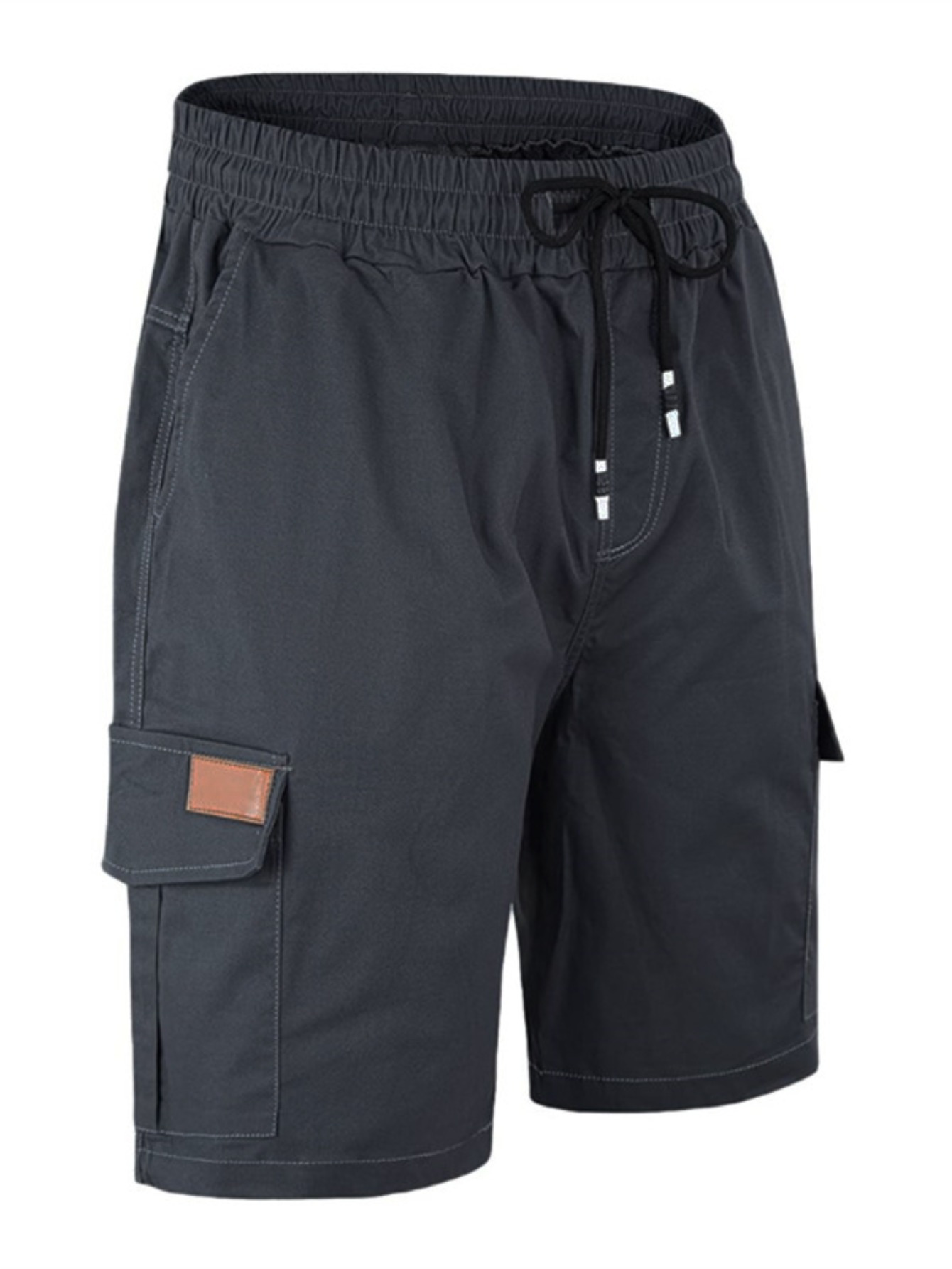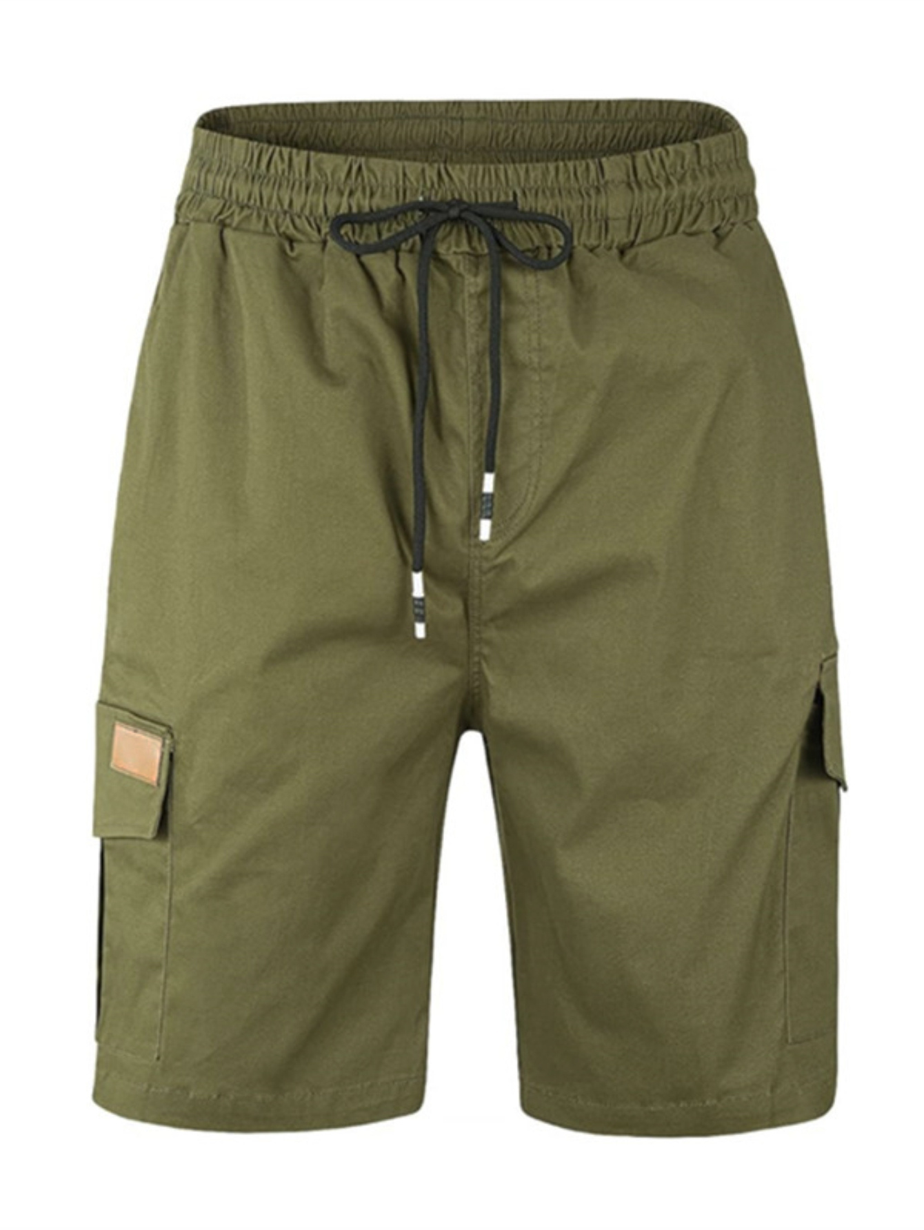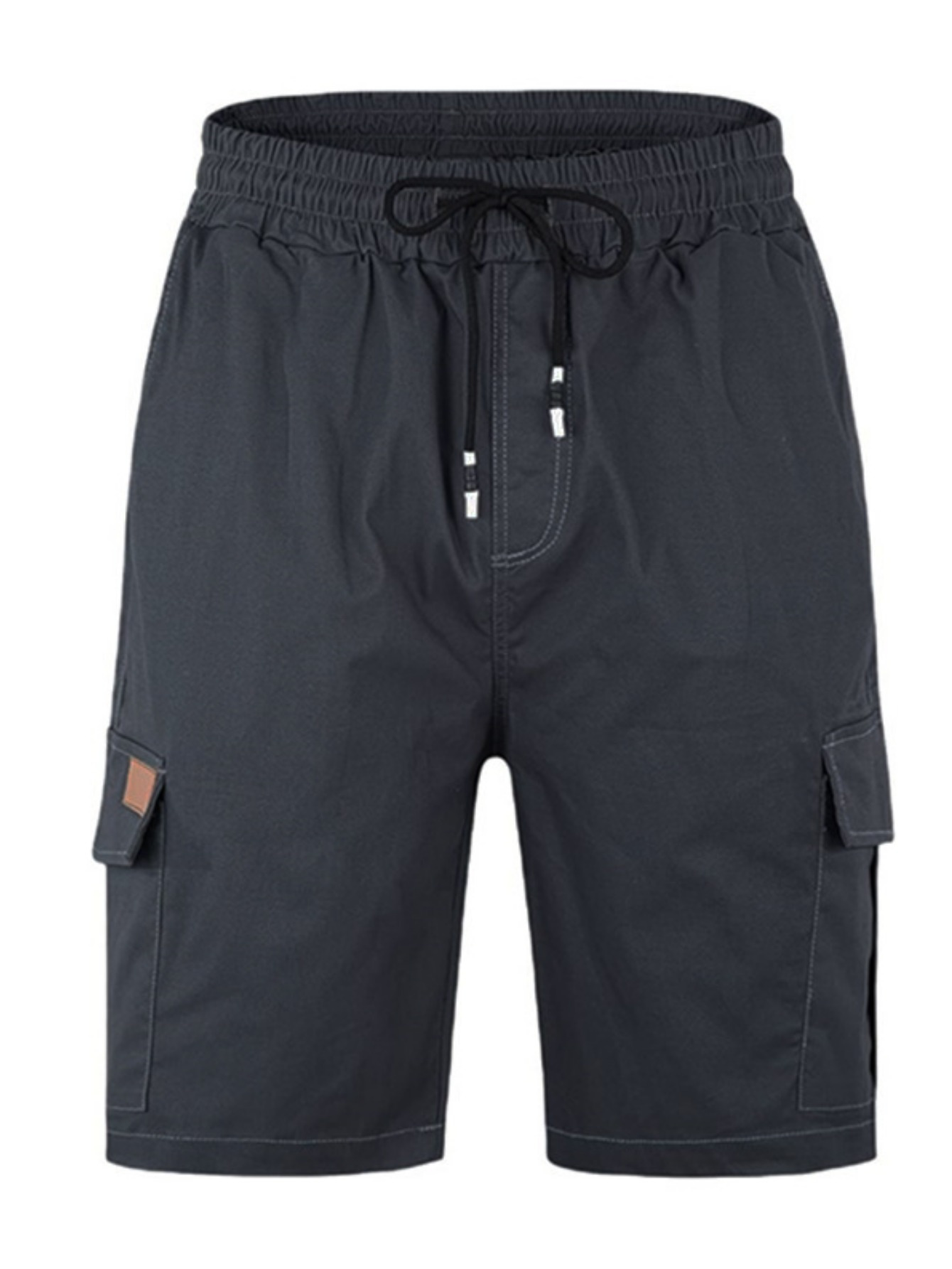 2 Pcs Men's Casual Cargo Shorts Elastic Drawstring Cotton Stretch Multiple Pockets Cargo Short