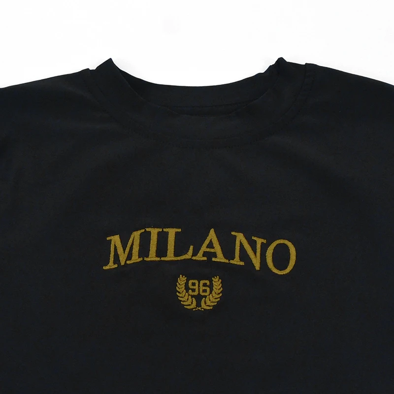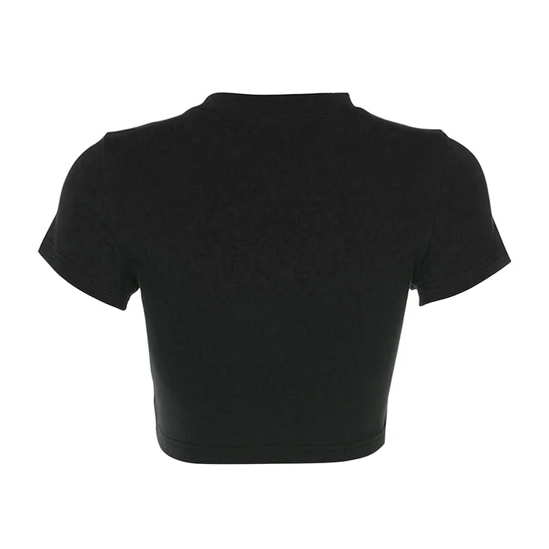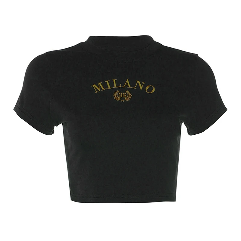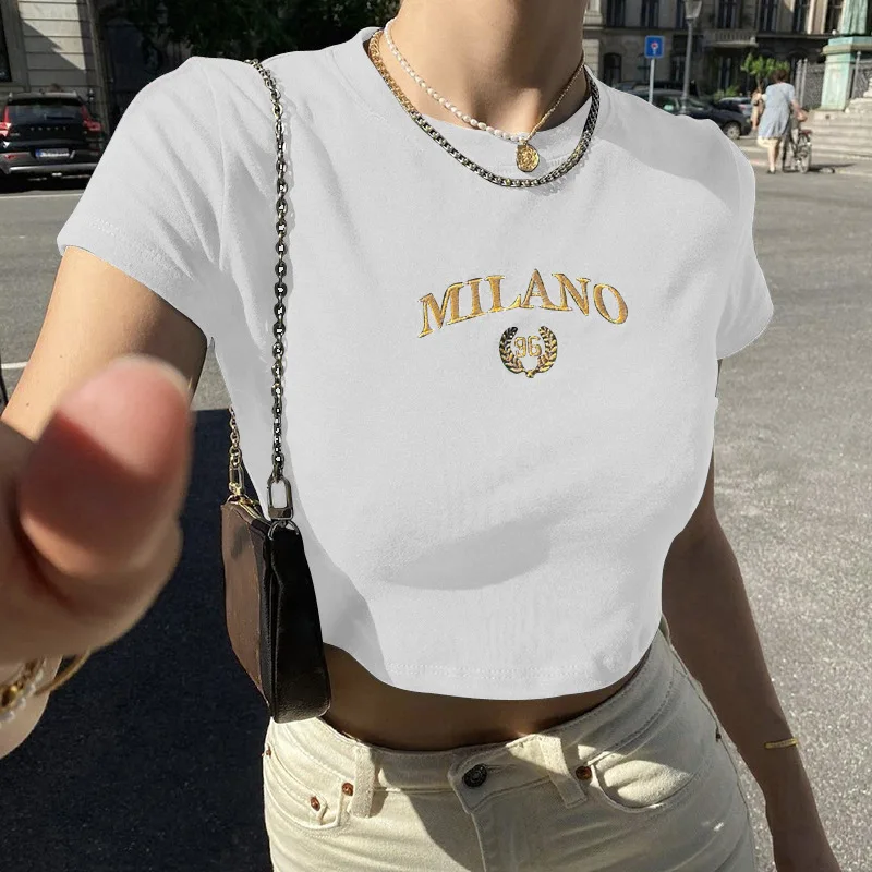 2024 New Women Cropped Top T-shirts Summer Fashion Embroidery Letter O-Neck Green Tees Slim Simple Basic Versatile Cropped Top