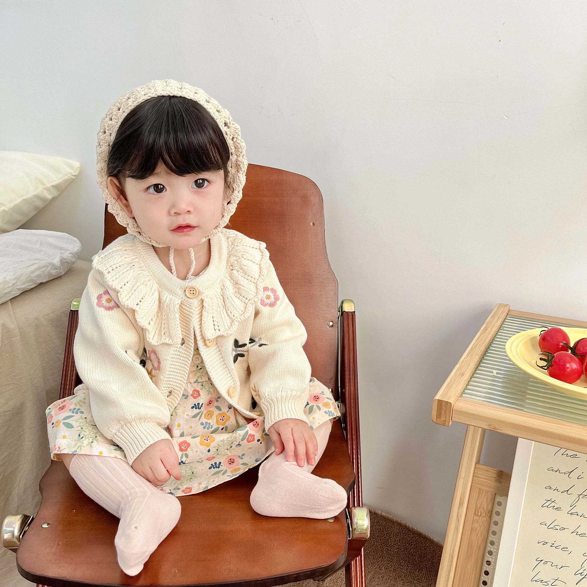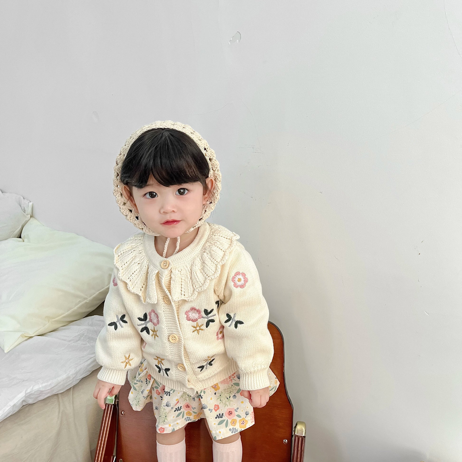 Baby knitwear embroidered flower coat girl baby sweater 100% cotton lace round neck spring baby cardigan