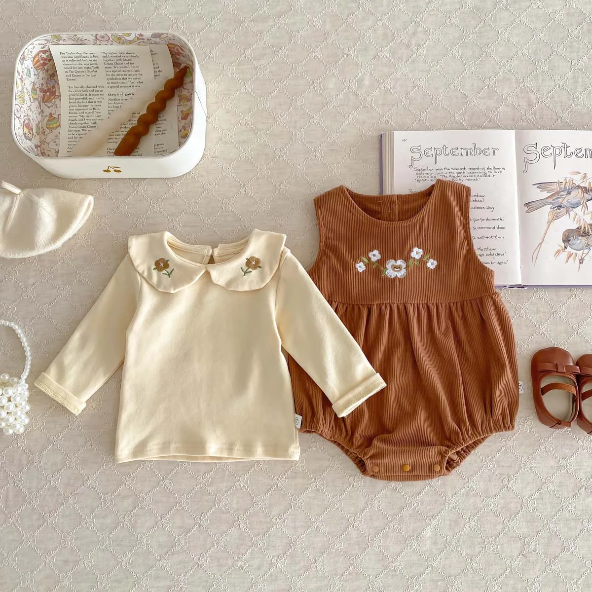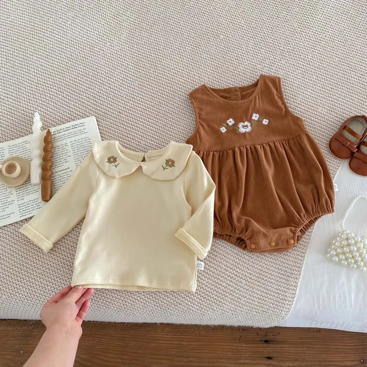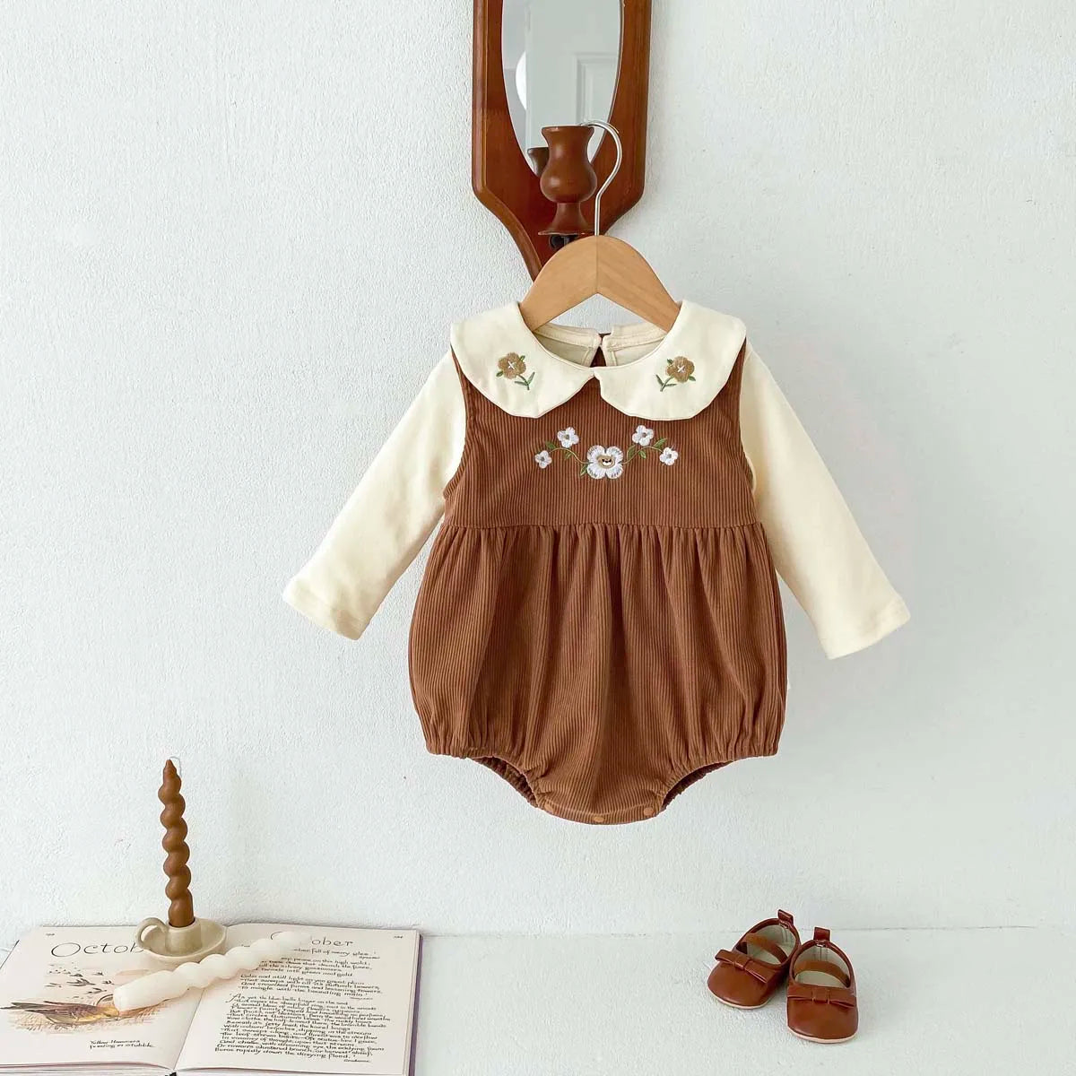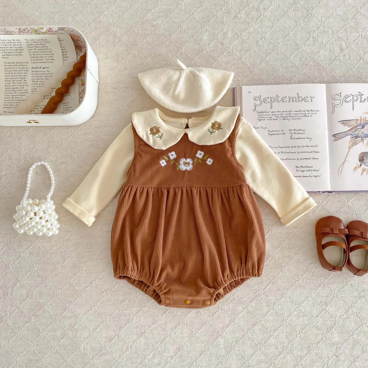 Baby Suit Sleeveless Romper + Long Sleeves Shirt Corduroy Embroidered Sweetheart Baby Girls Bodysuit 1-3Y