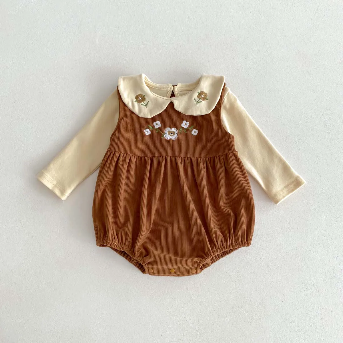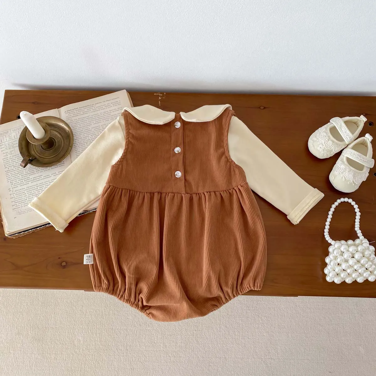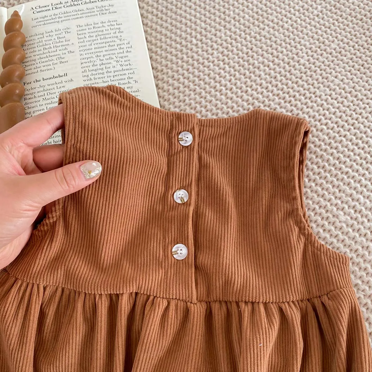 Baby Suit Sleeveless Romper + Long Sleeves Shirt Corduroy Embroidered Sweetheart Baby Girls Bodysuit 1-3Y
