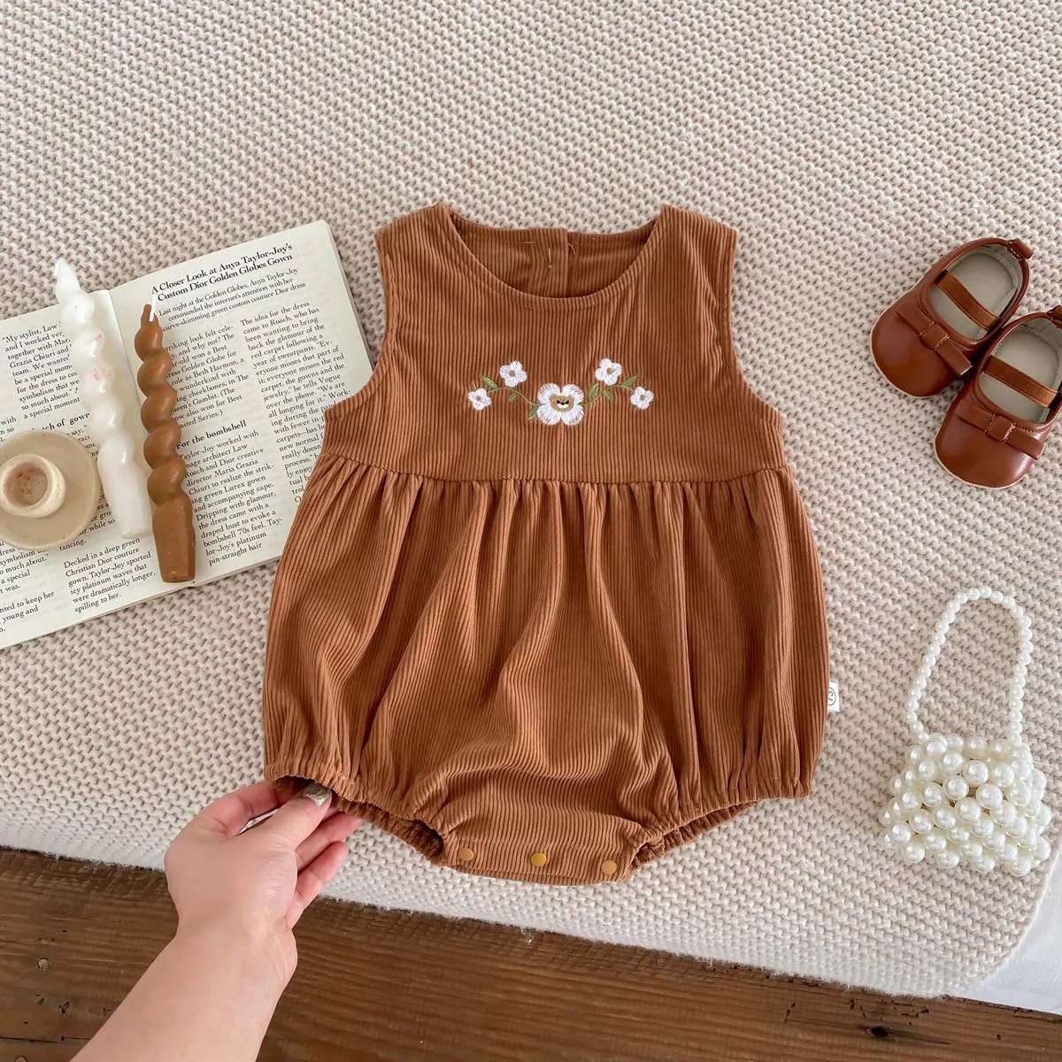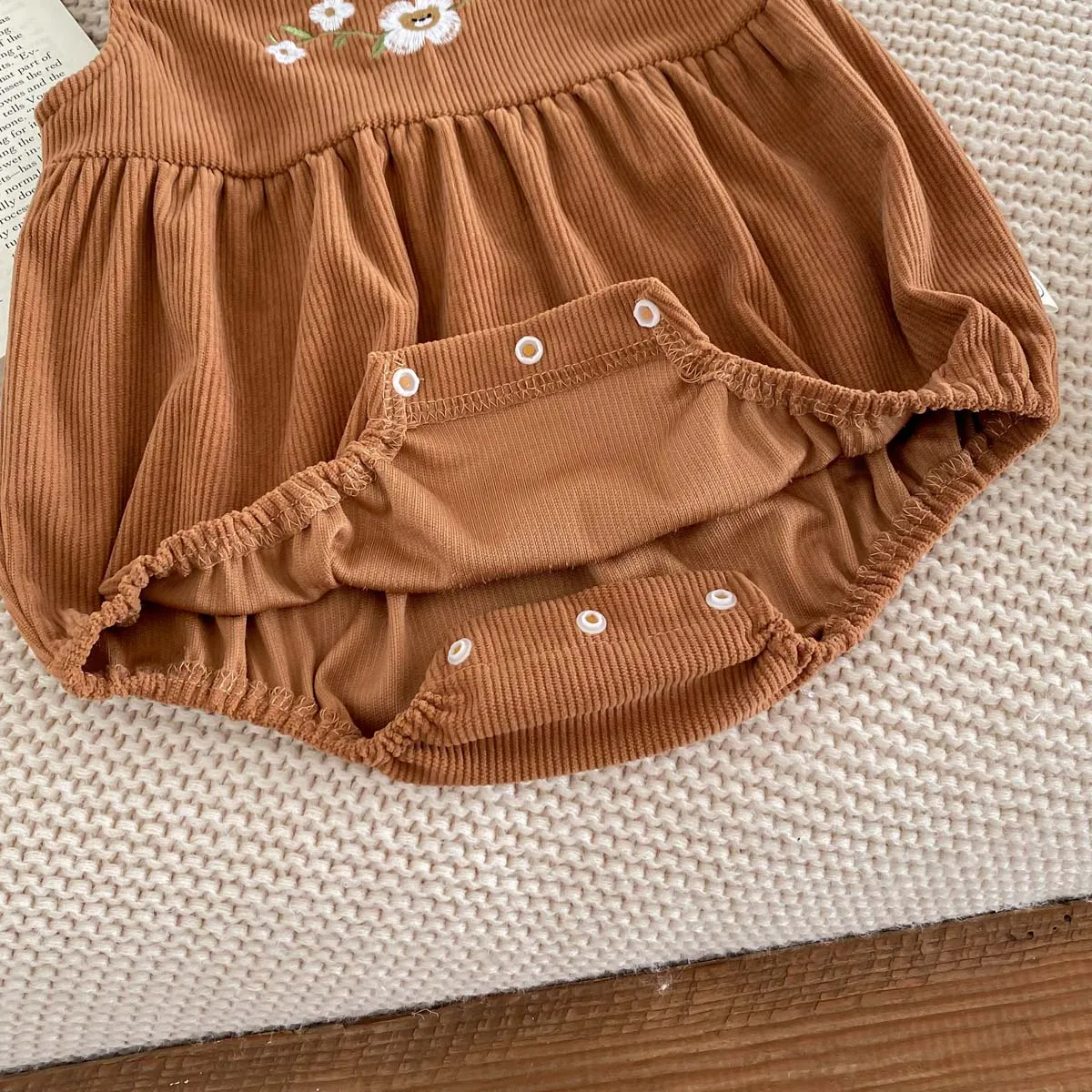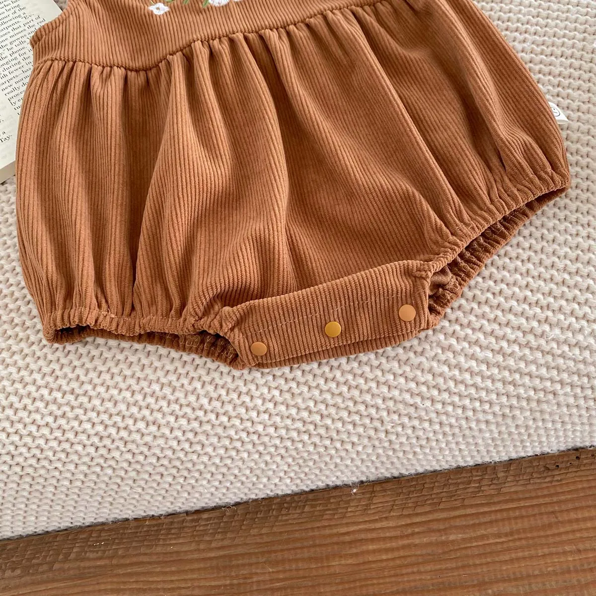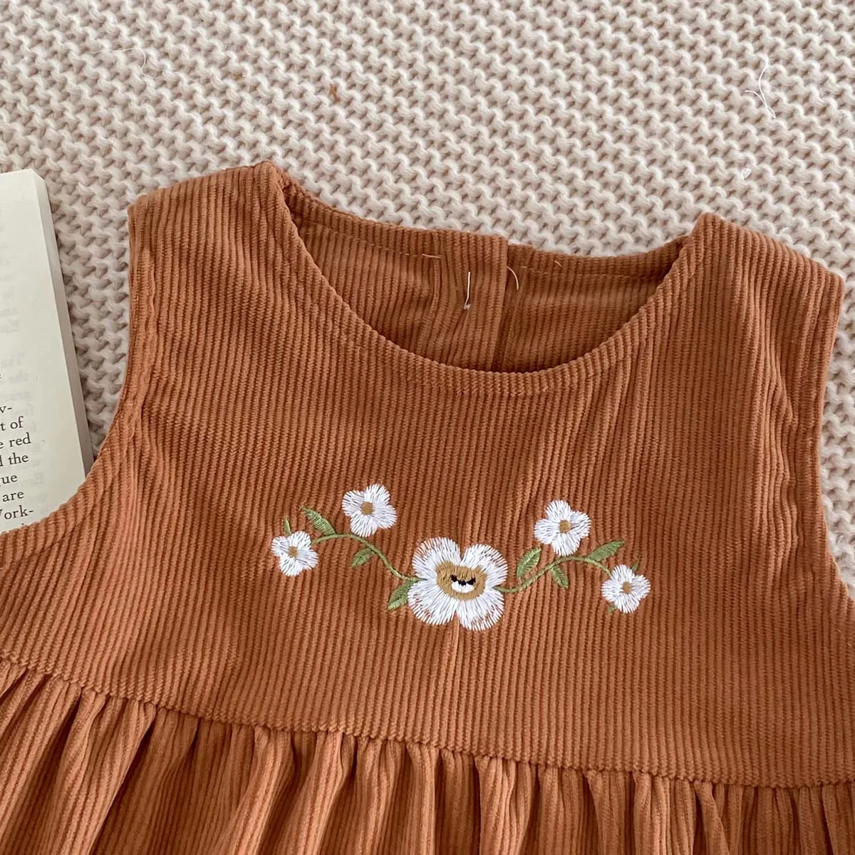 Baby Suit Sleeveless Romper + Long Sleeves Shirt Corduroy Embroidered Sweetheart Baby Girls Bodysuit 1-3Y