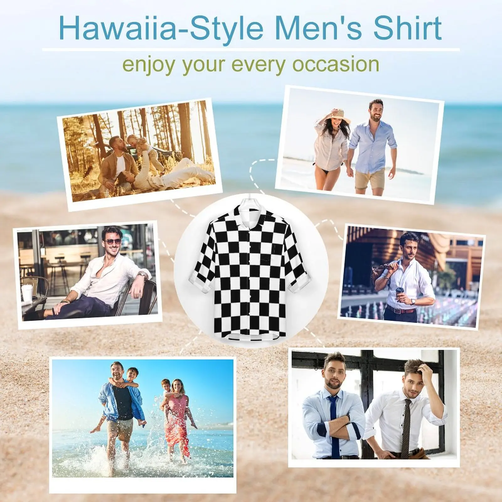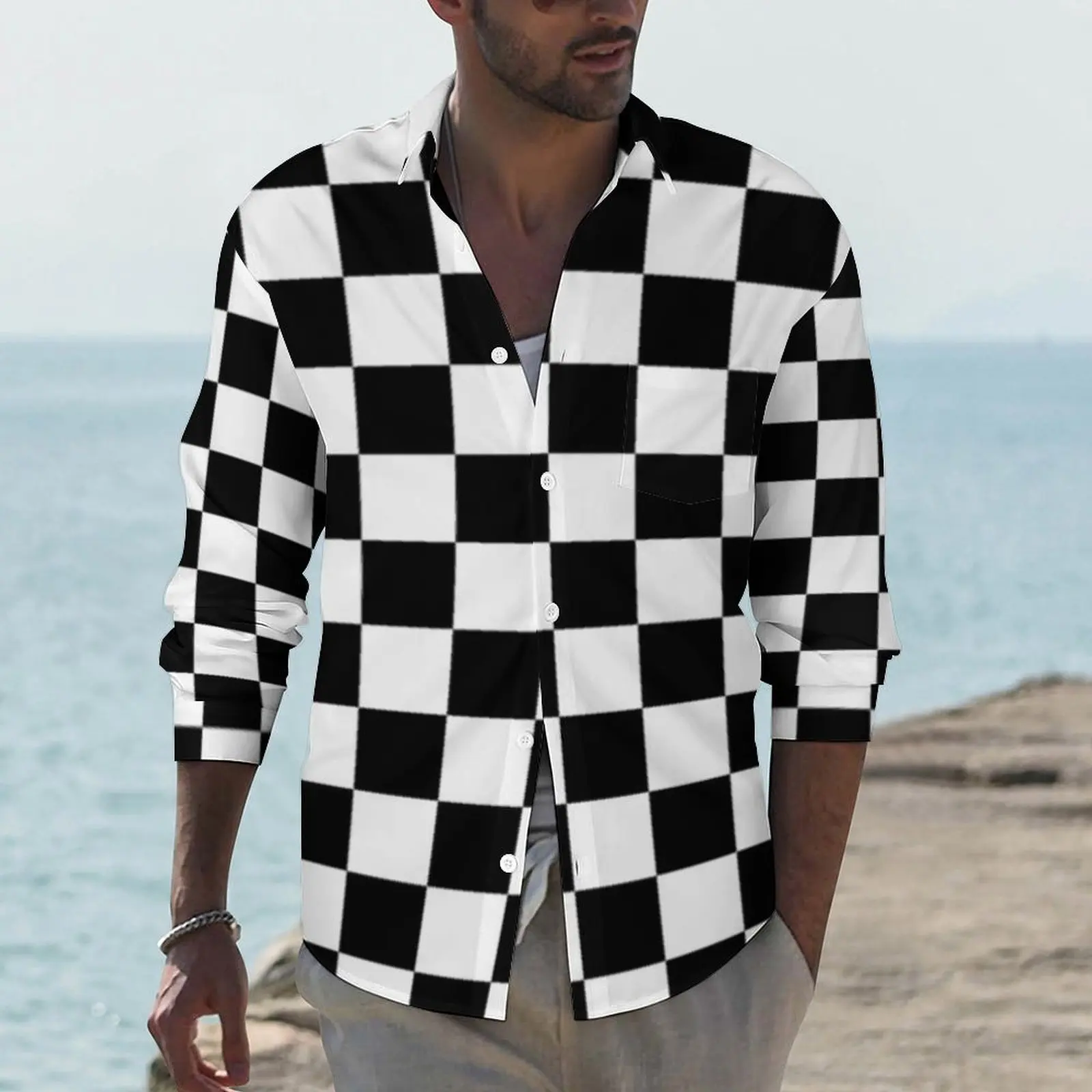 Black Checkerboard Shirt Men Classic Black and White Checker Casual Shirts Autumn Blouses Long Sleeve Fashion Oversized Clothing