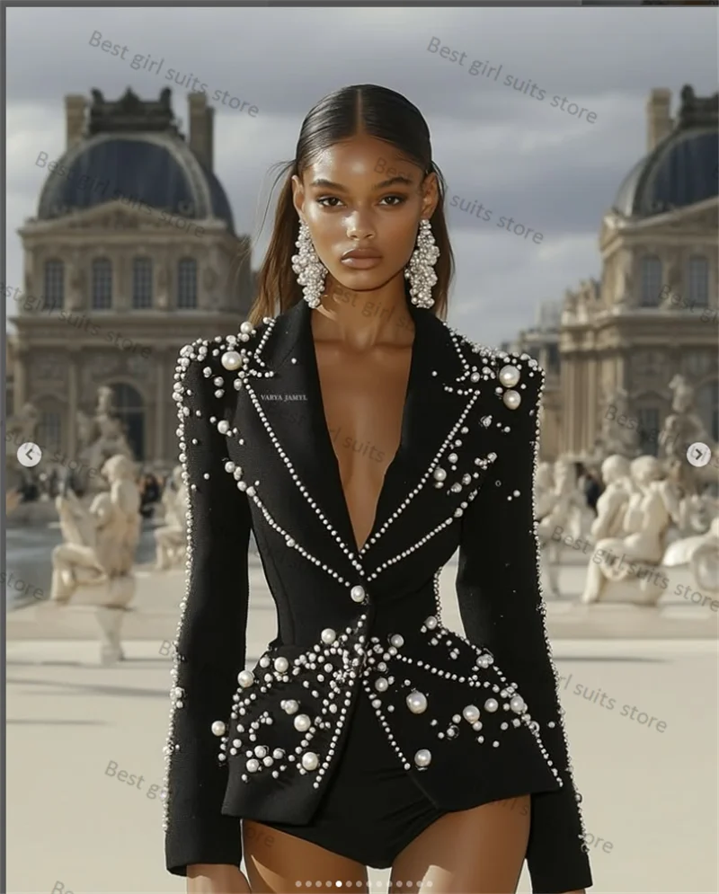 Black Women Suit 1 Piece Blazer Luxury Pearls Formal Office Lady Jacket Customized Wedding Tuxedos Coat Outfit