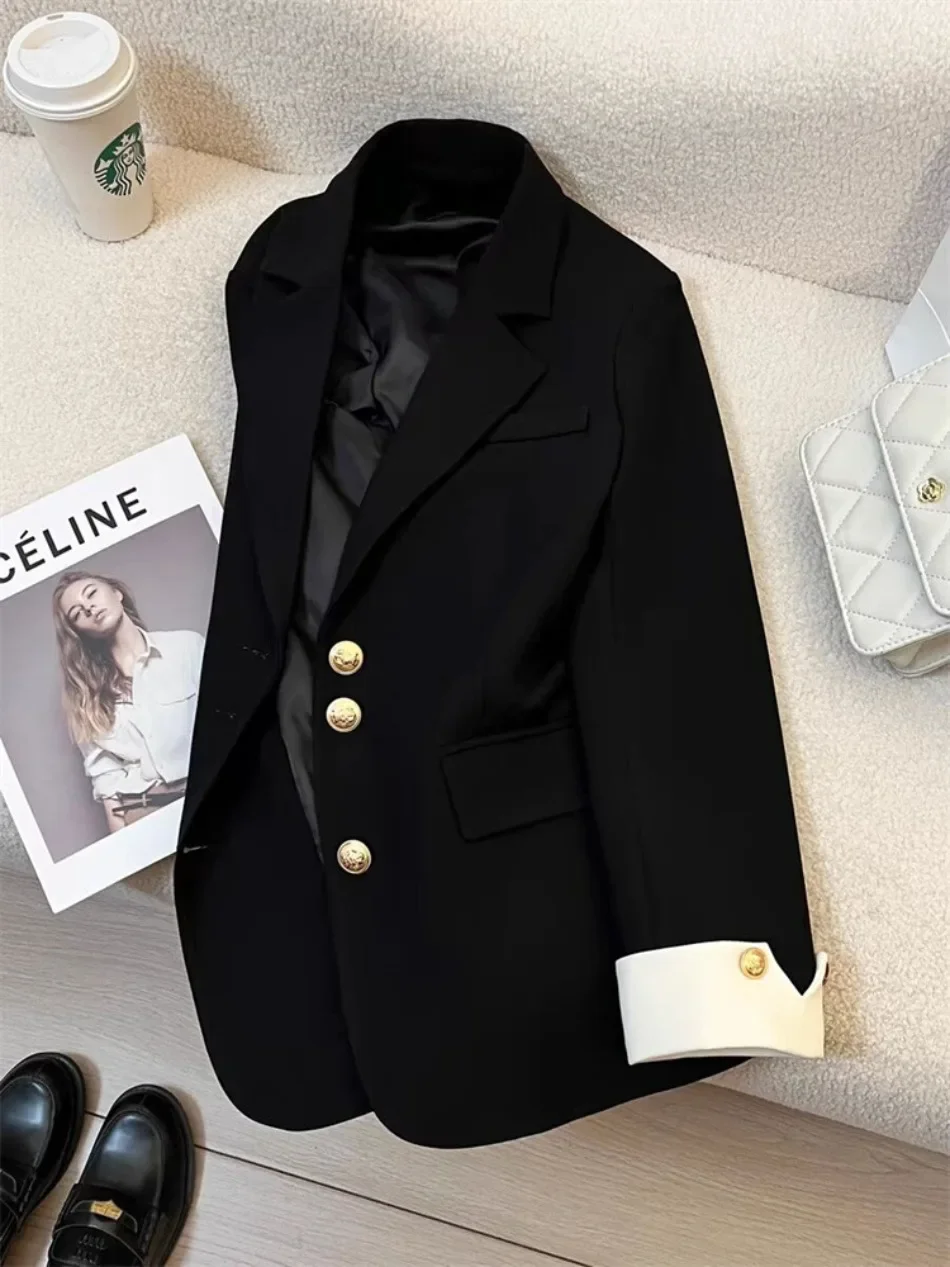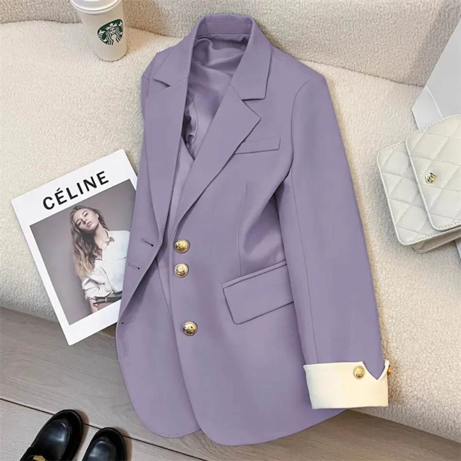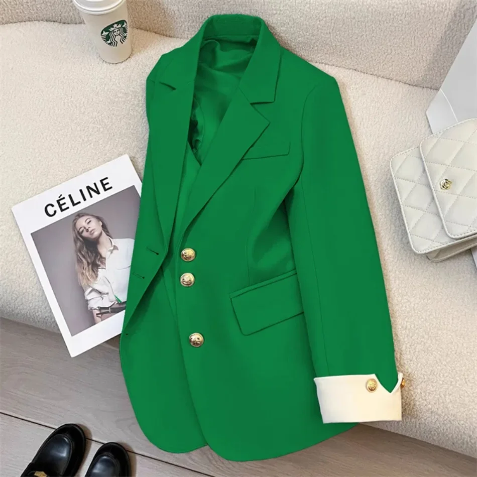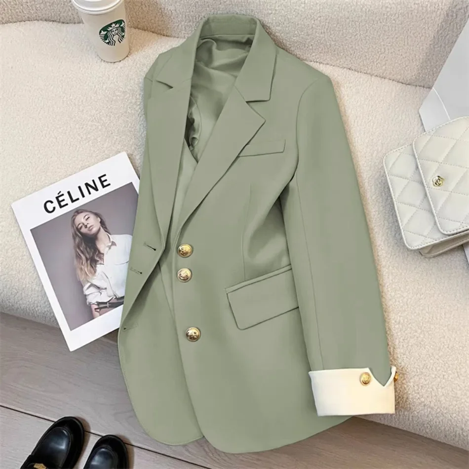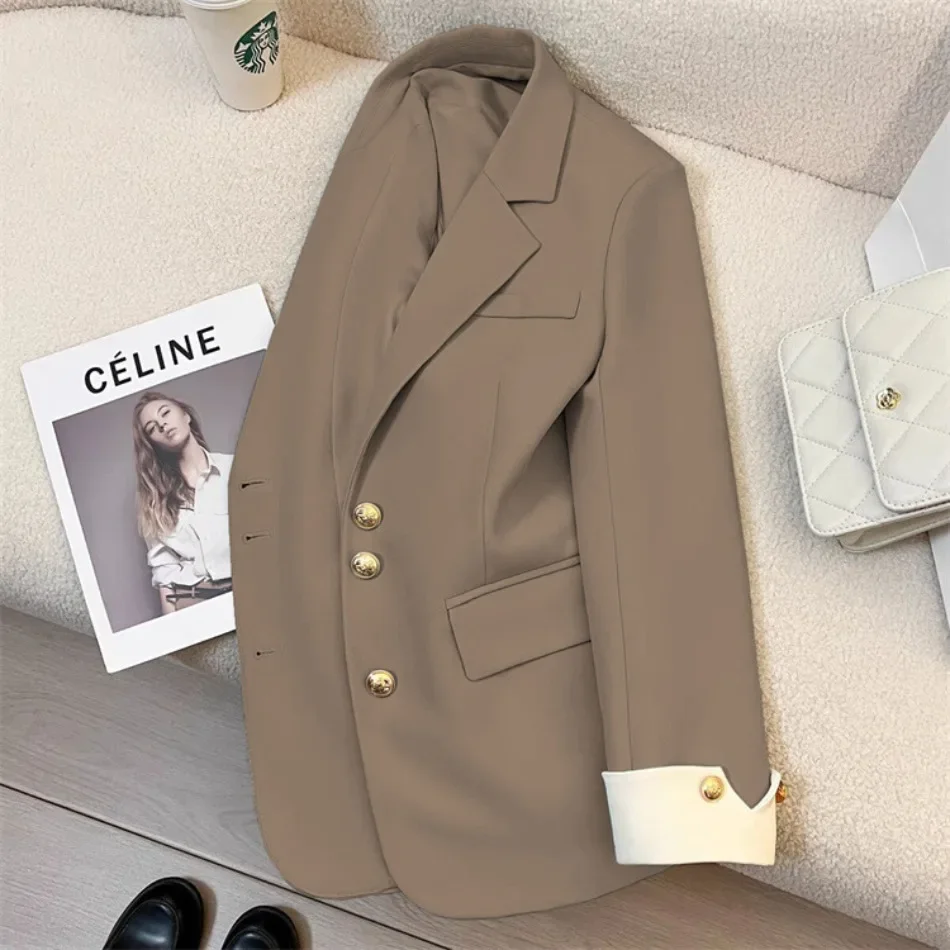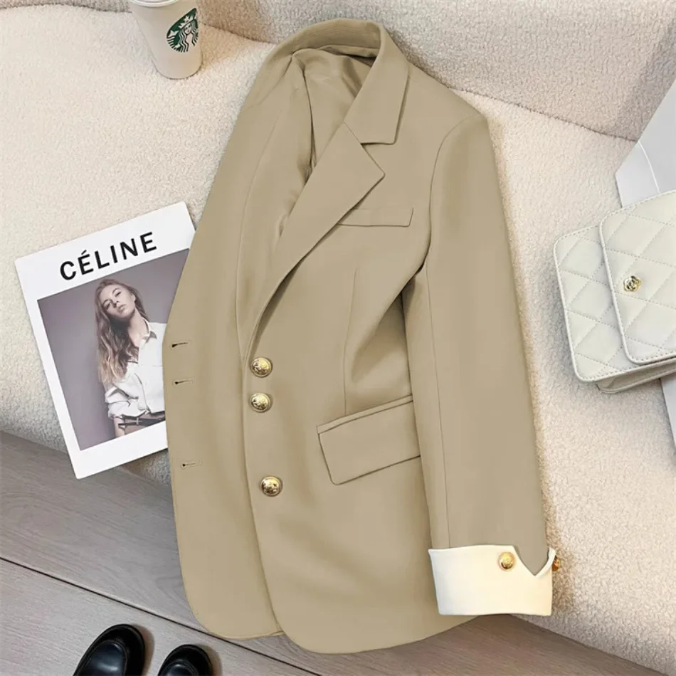 Blazer Women Clothing 2025 Spring and Autumn New Long Sleeve Pocket Casual Solid Temperament Blazers for Women Coat