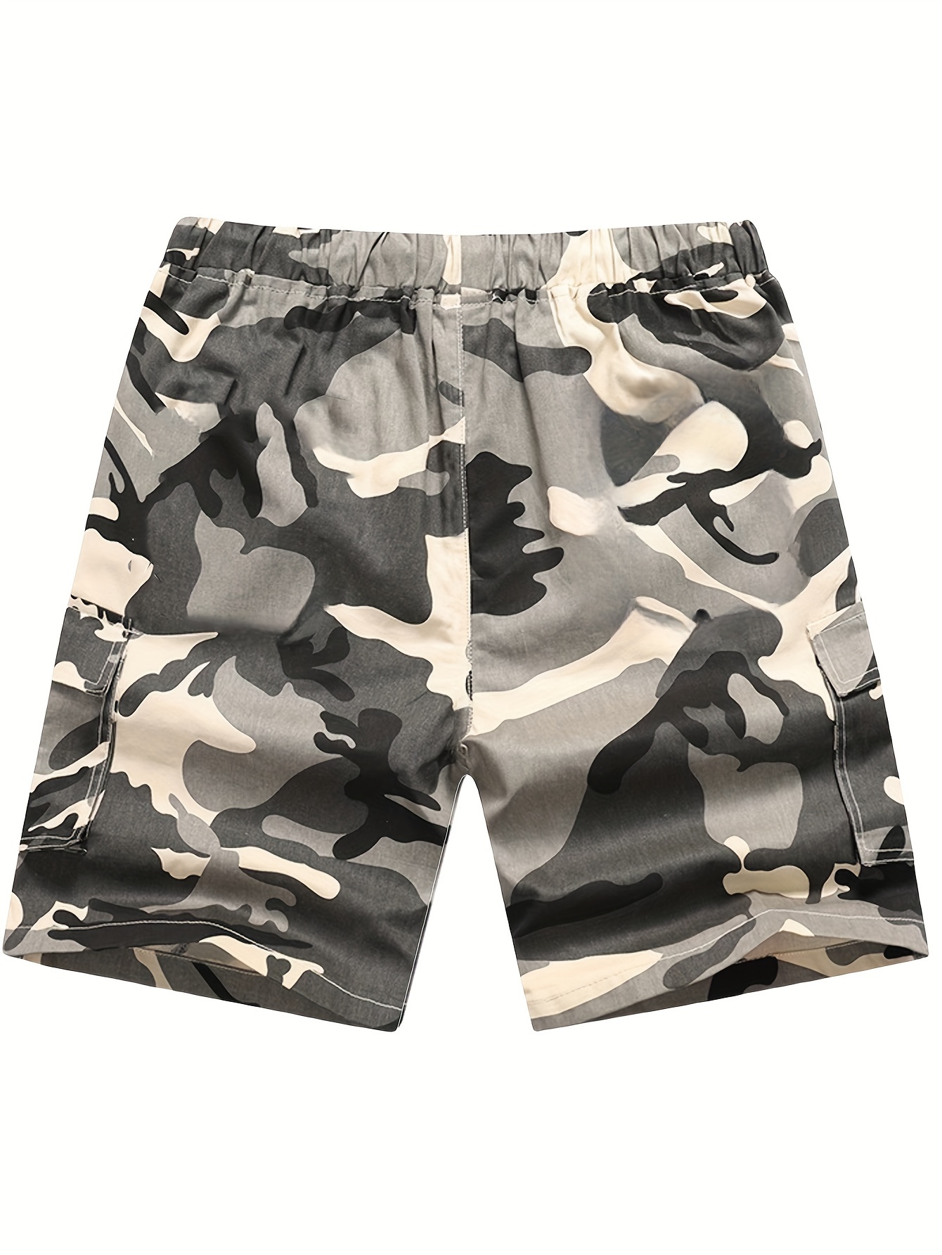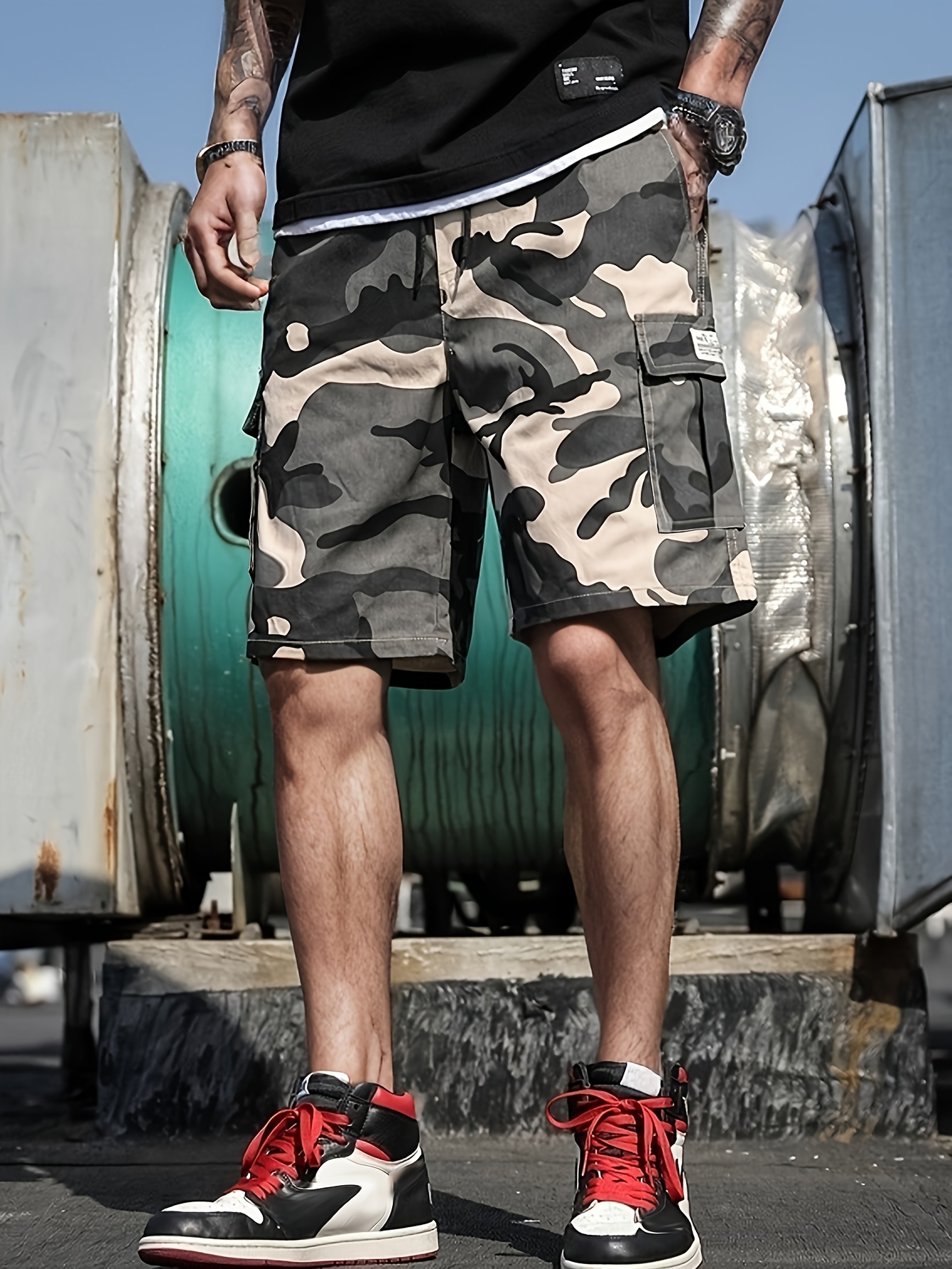 Camouflage Print Men's Cargo Shorts Pants Outdoor Hiking Multi-Pocket Utility Shorts, Casual Style, For Summer