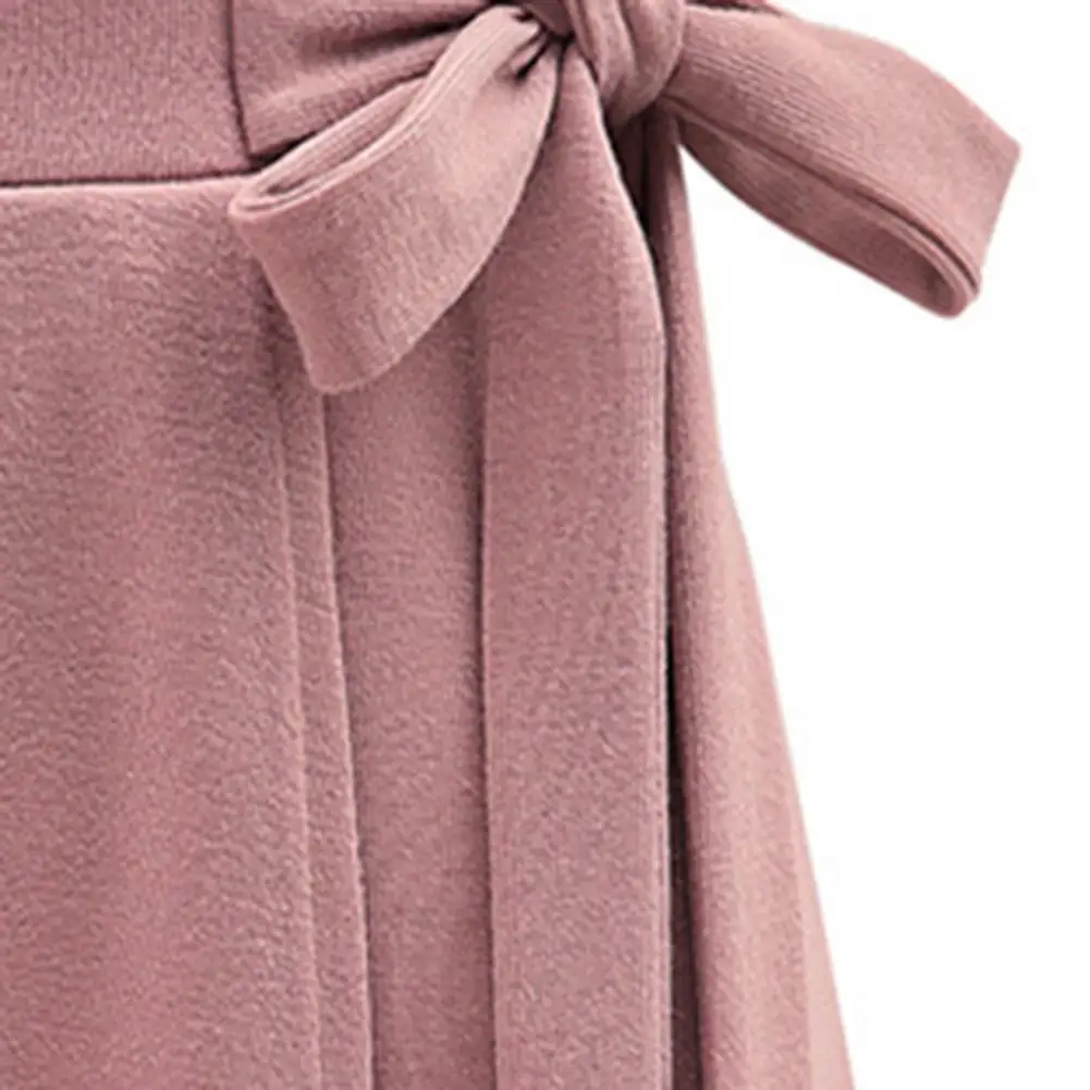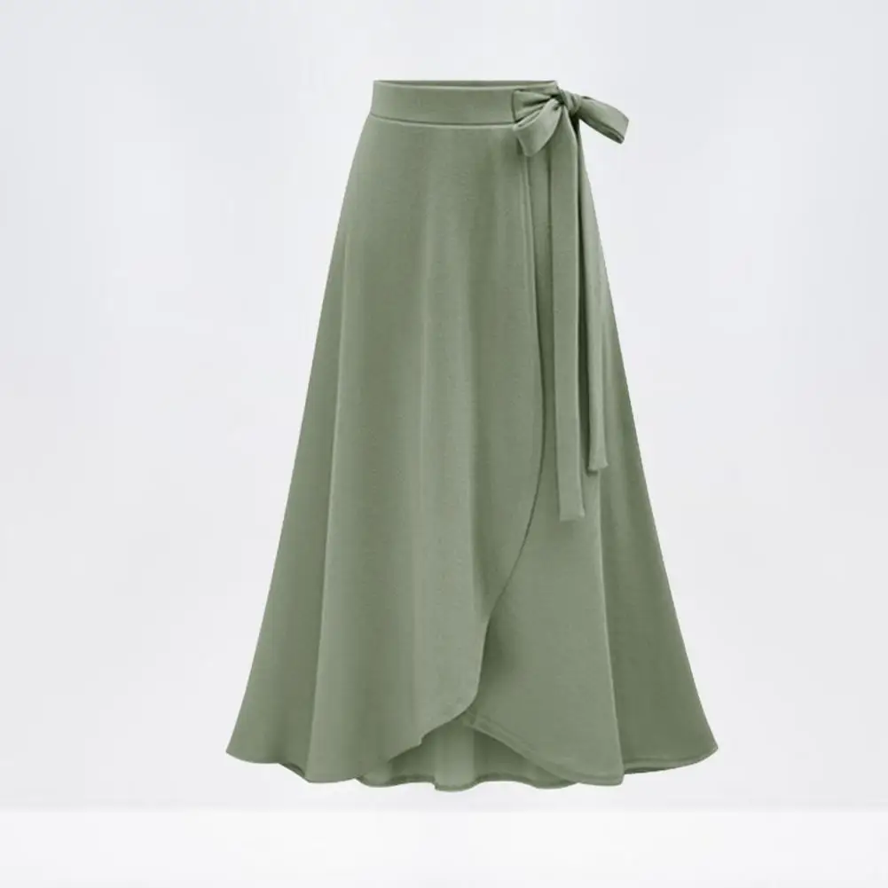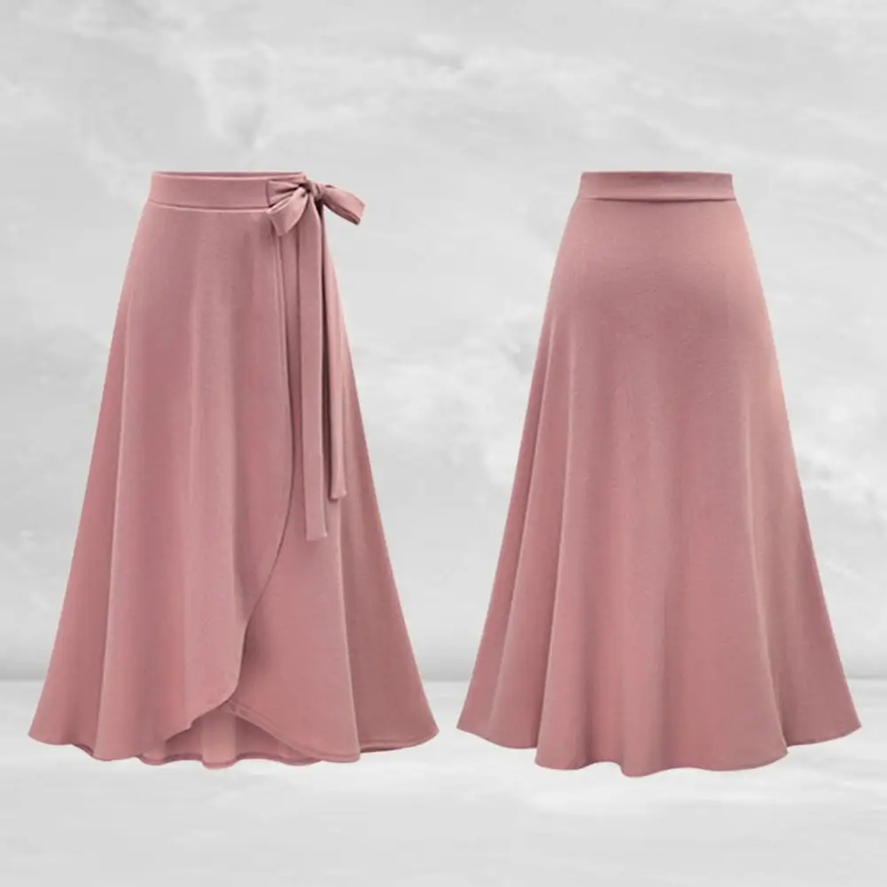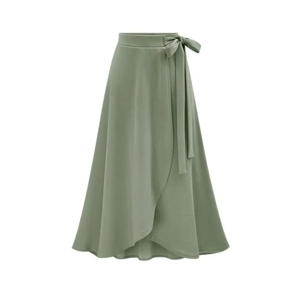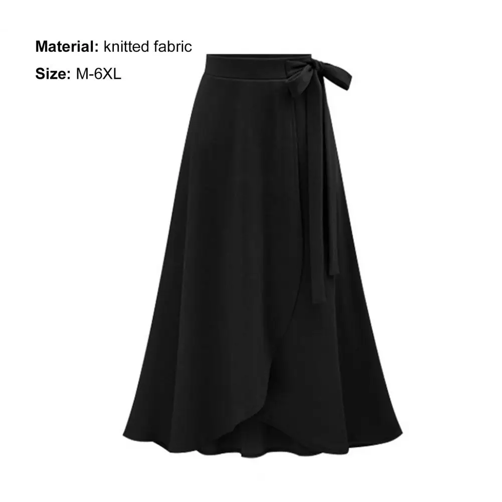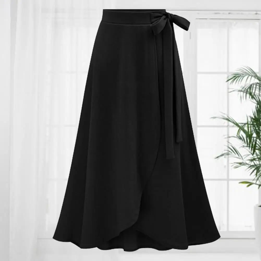 Elegant Office Lady Skirt Bandage Solid Color High Waist Slit Large Hem Long Skirt for Date