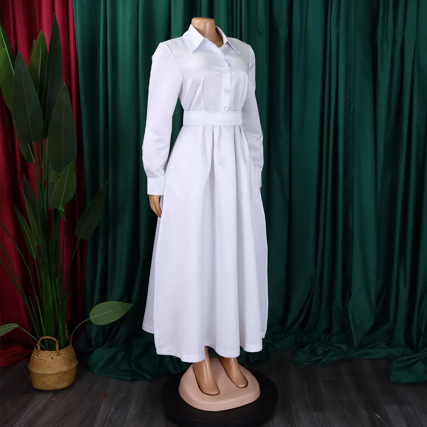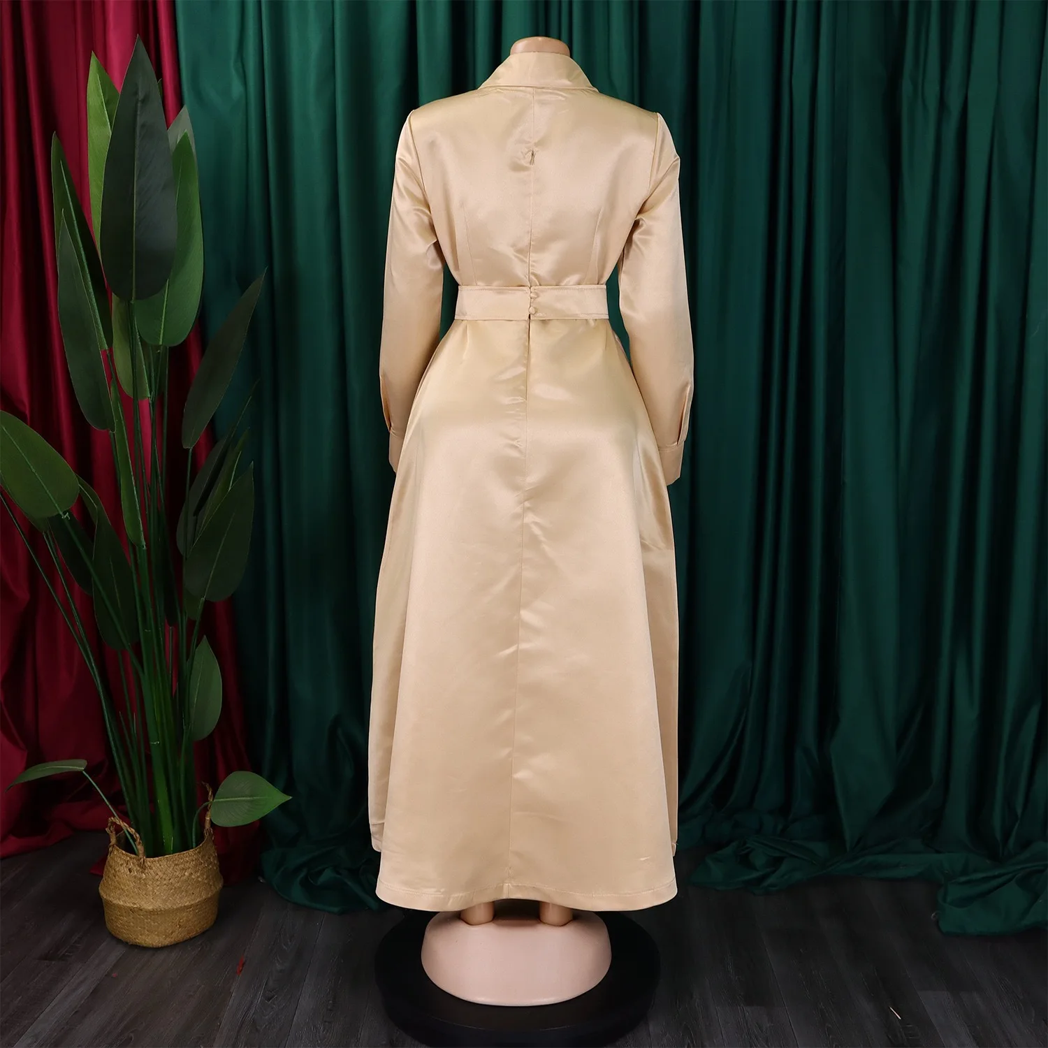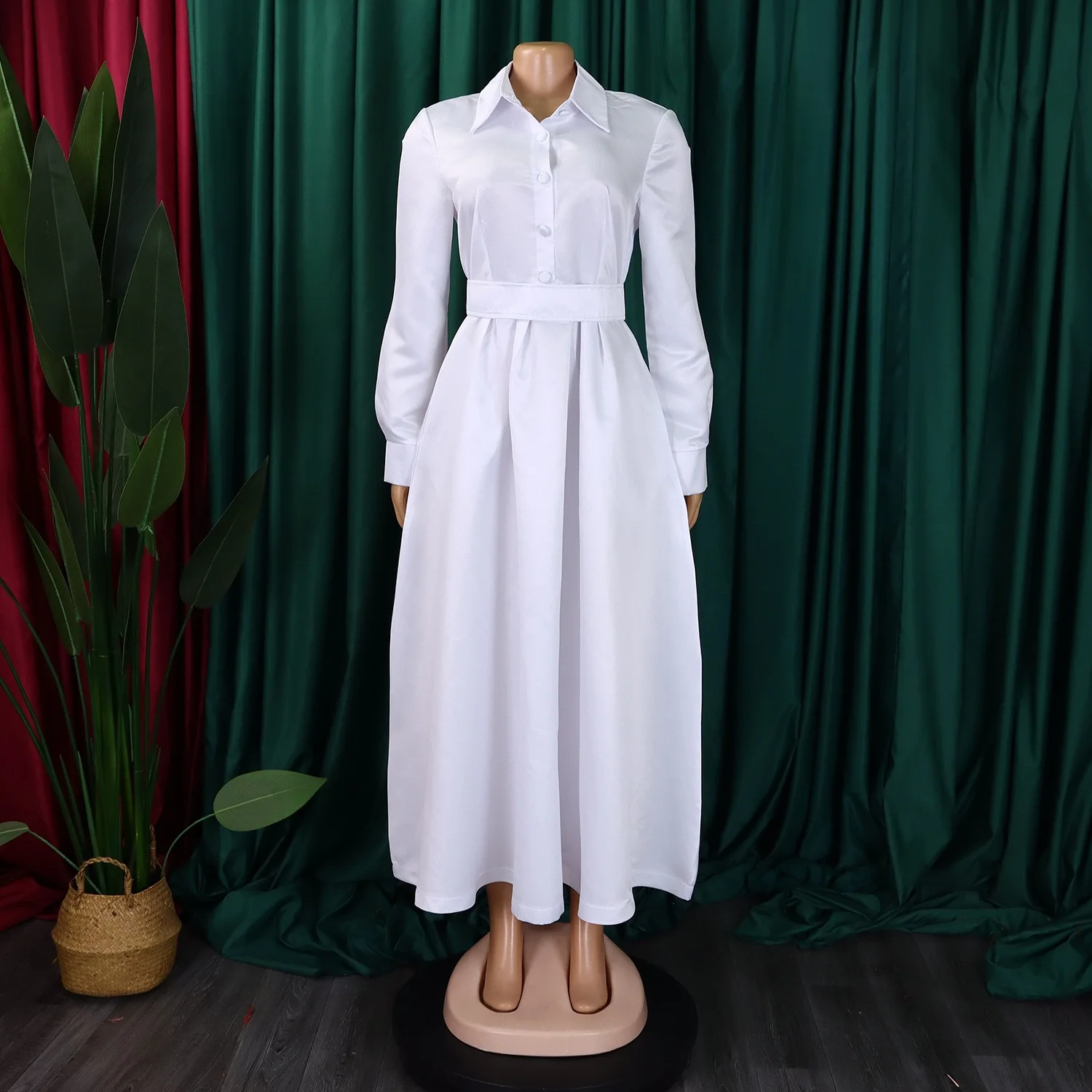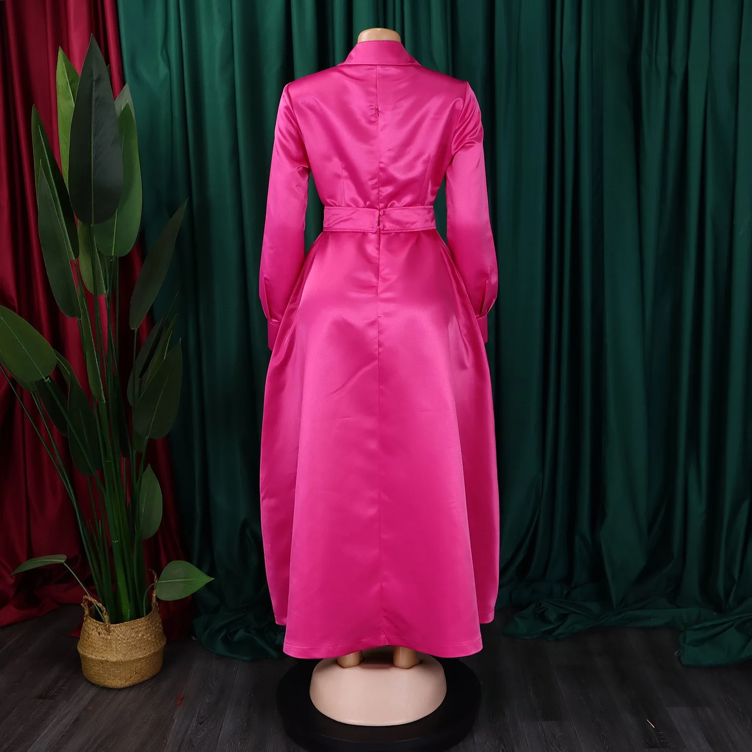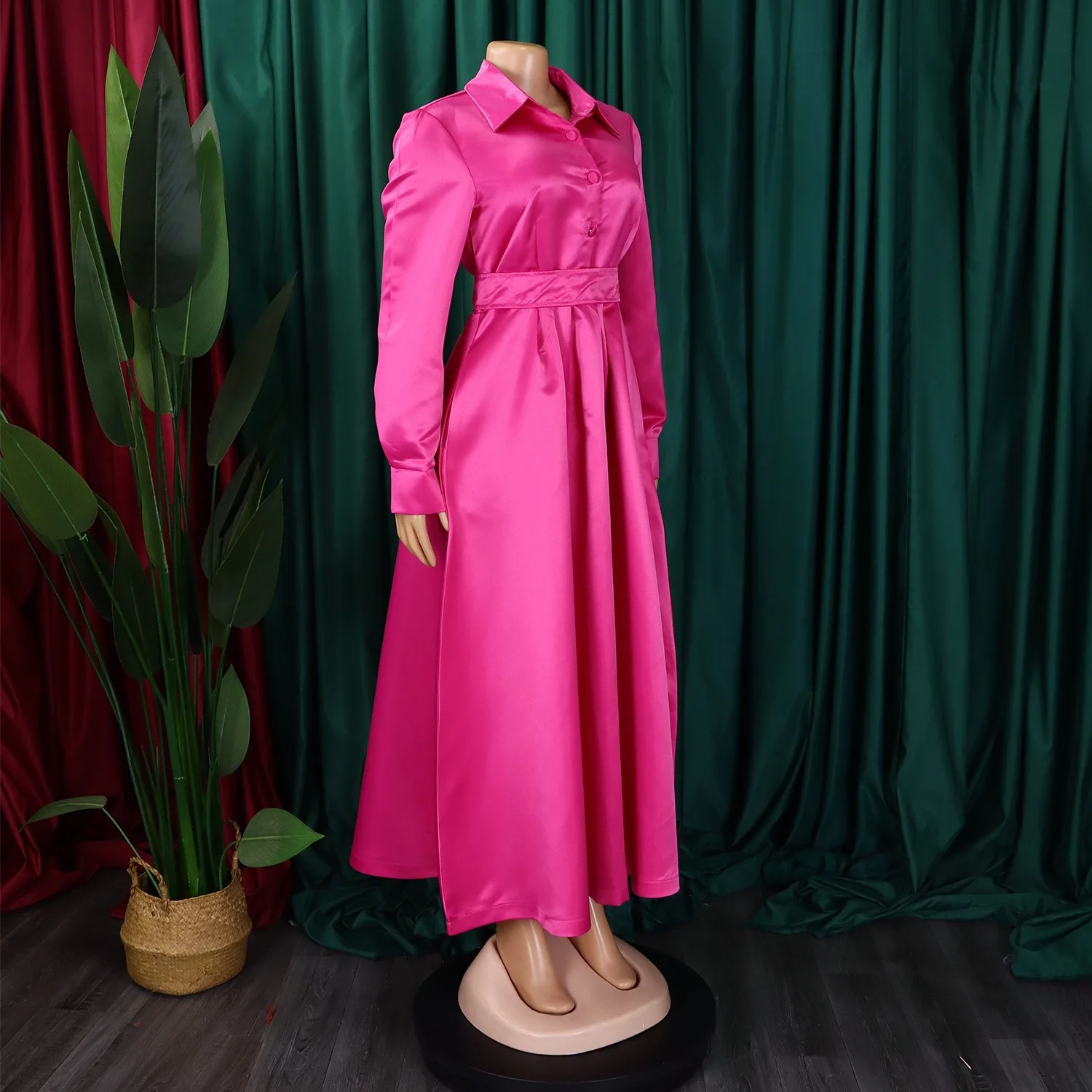 Elegant Party Dresses for Woman Turn Down Collar Single Breasted High Waisted Pleated Mid Calf Luxury Dinner Night Dress Gowns