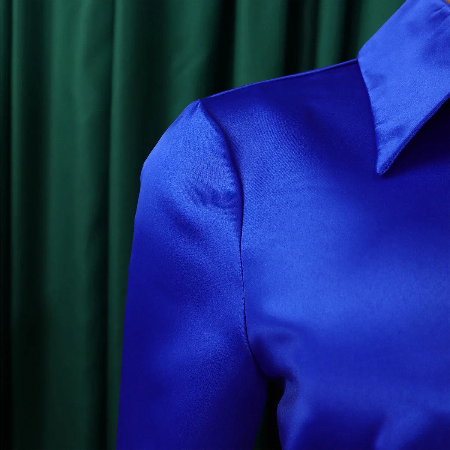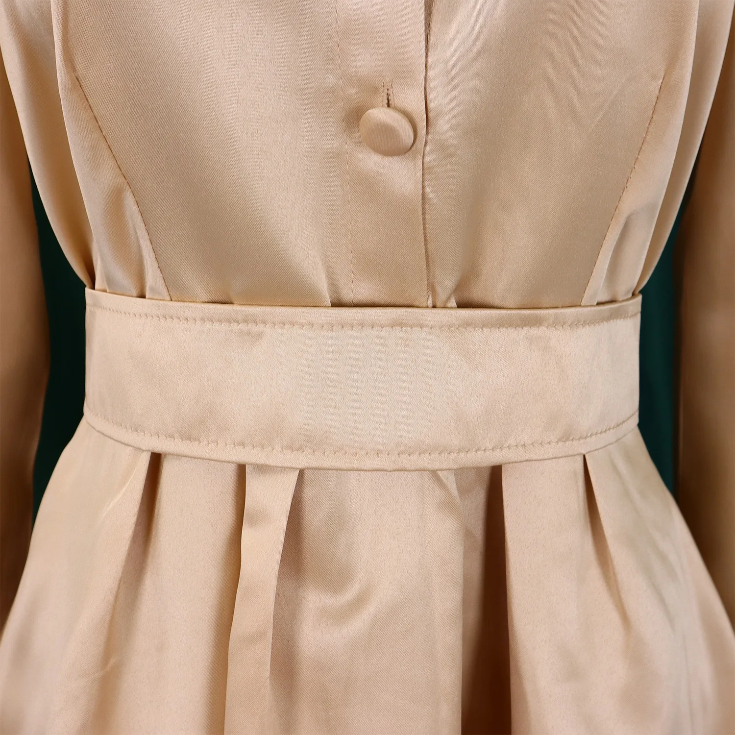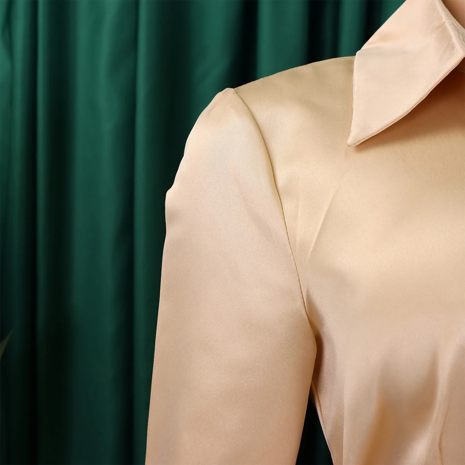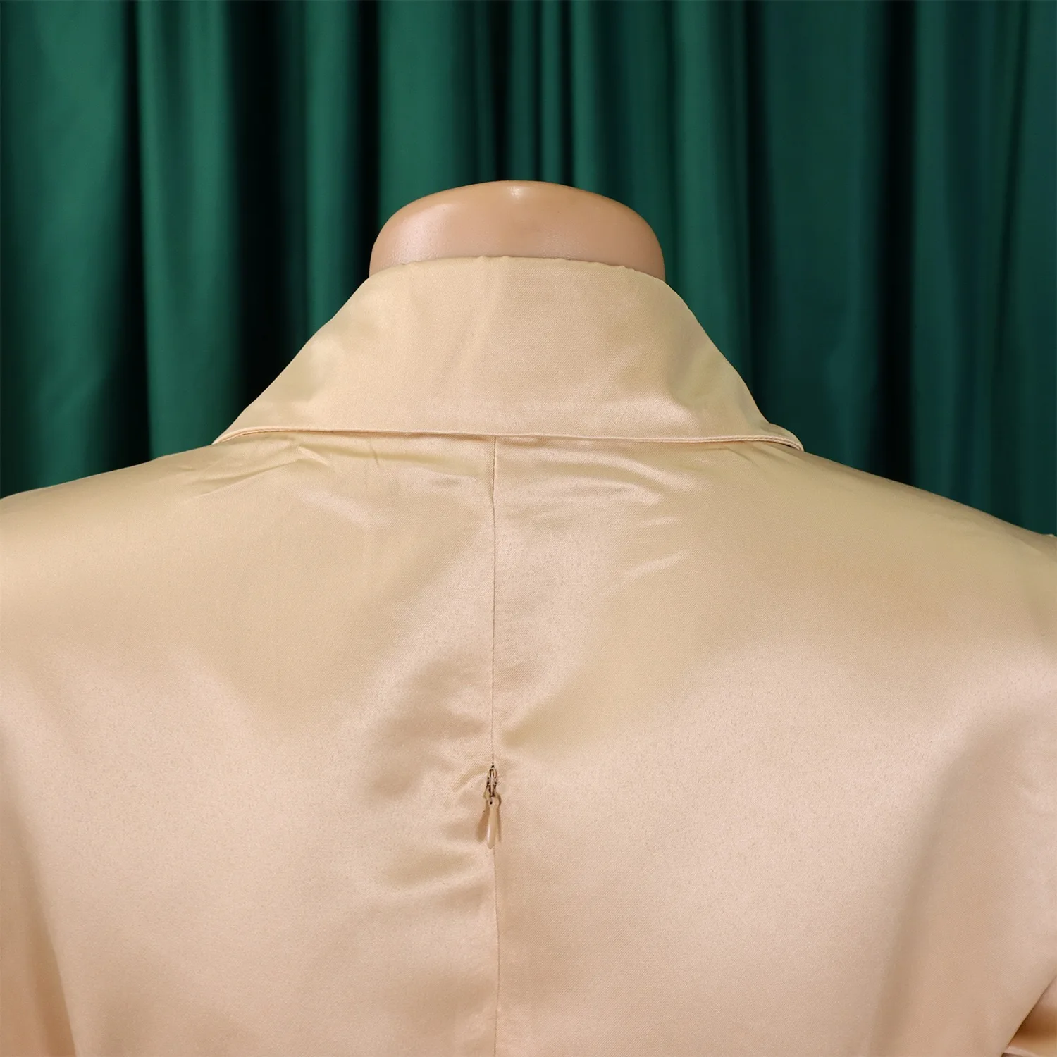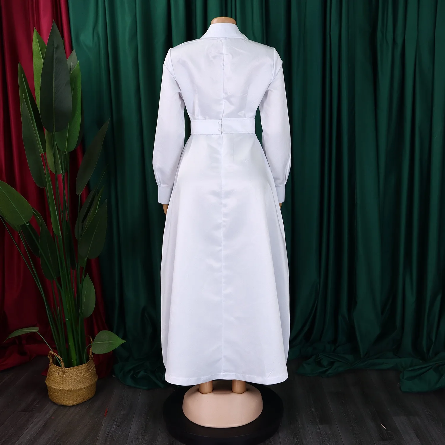Elegant Party Dresses for Woman Turn Down Collar Single Breasted High Waisted Pleated Mid Calf Luxury Dinner Night Dress Gowns