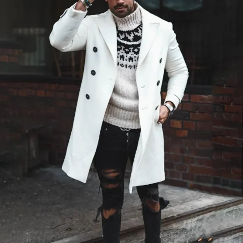 Fashion Men Woolen Coat New Solid Casual Lapel Double-breasted Coat Woolen Coat Men Long Sleeve Cardigan Overcoat Tops