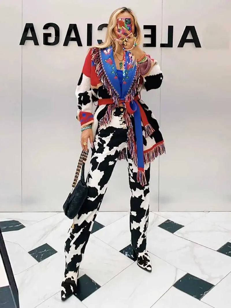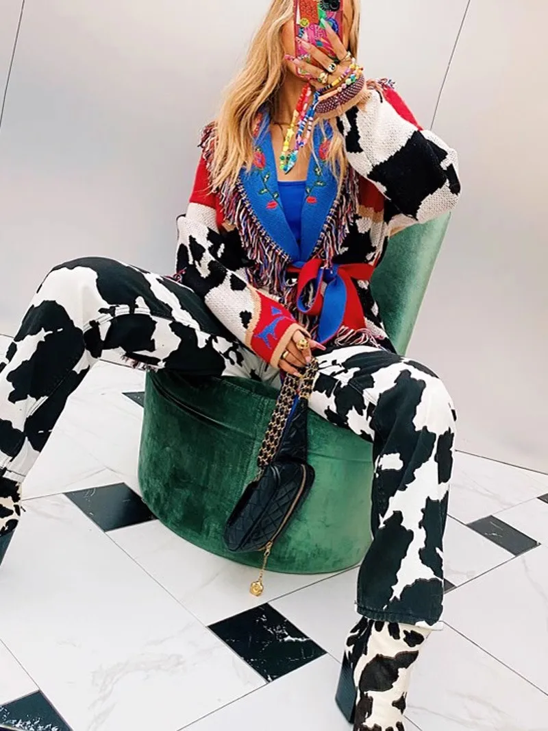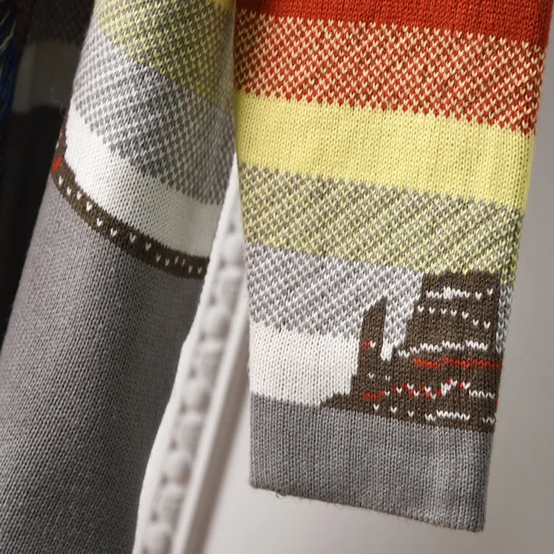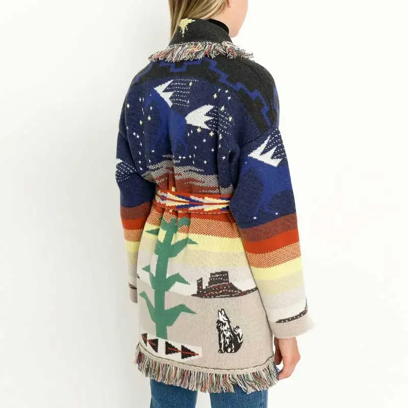 Hand-made cardigan jacquard cardigan fringed trims long sleeve cardigan women winter clothes women