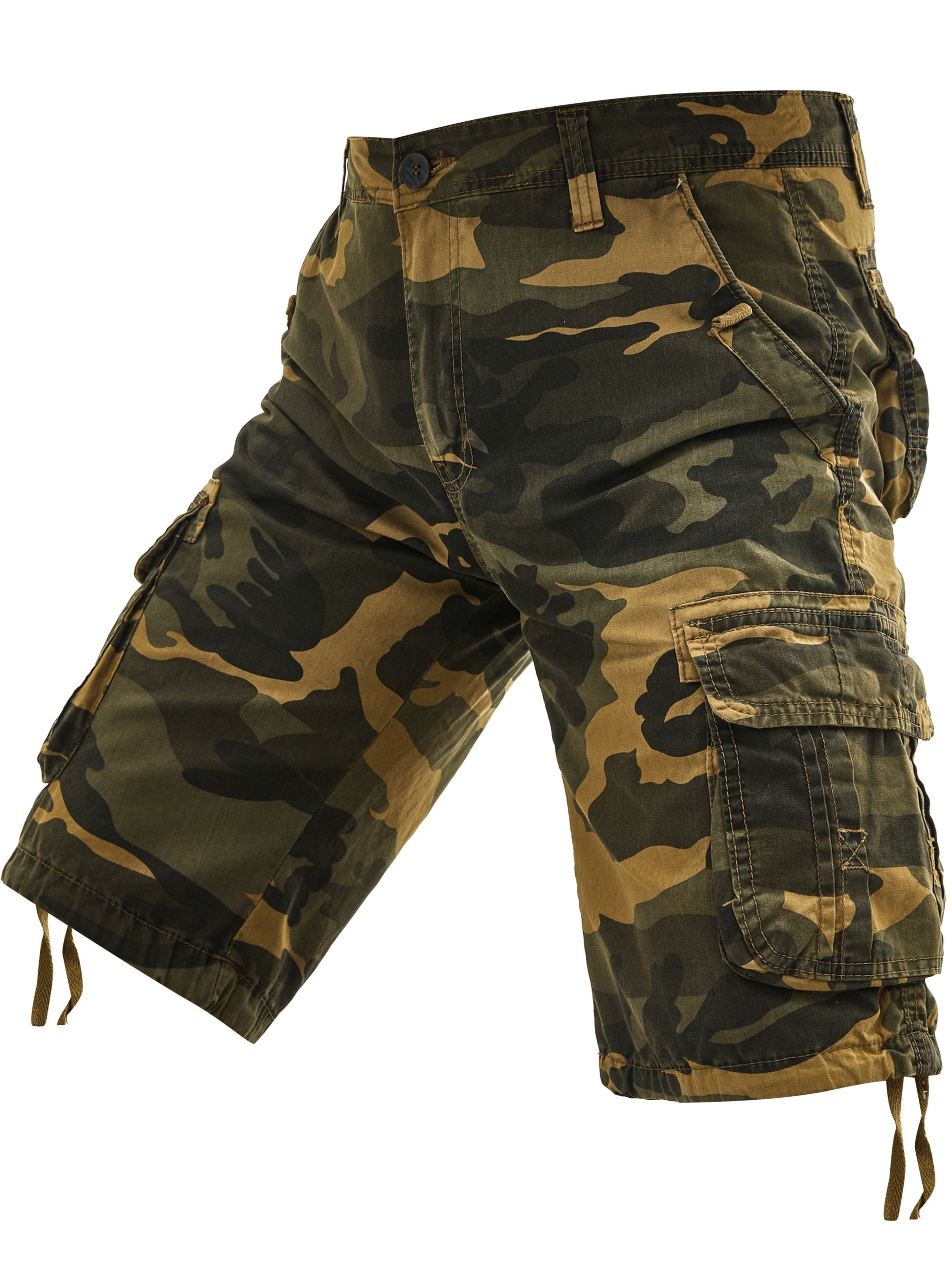 Men's 100% Cotton Camo Cargo Shorts, Denim Style, Non-Stretch Woven Fabric, Regular Fit with Pockets, Ideal for Hiking & Outdoor Activities, Spring/Summer/Fall Collection, Casual Wear|Rugged Outdoor Look|Woven Fabric Shorts,