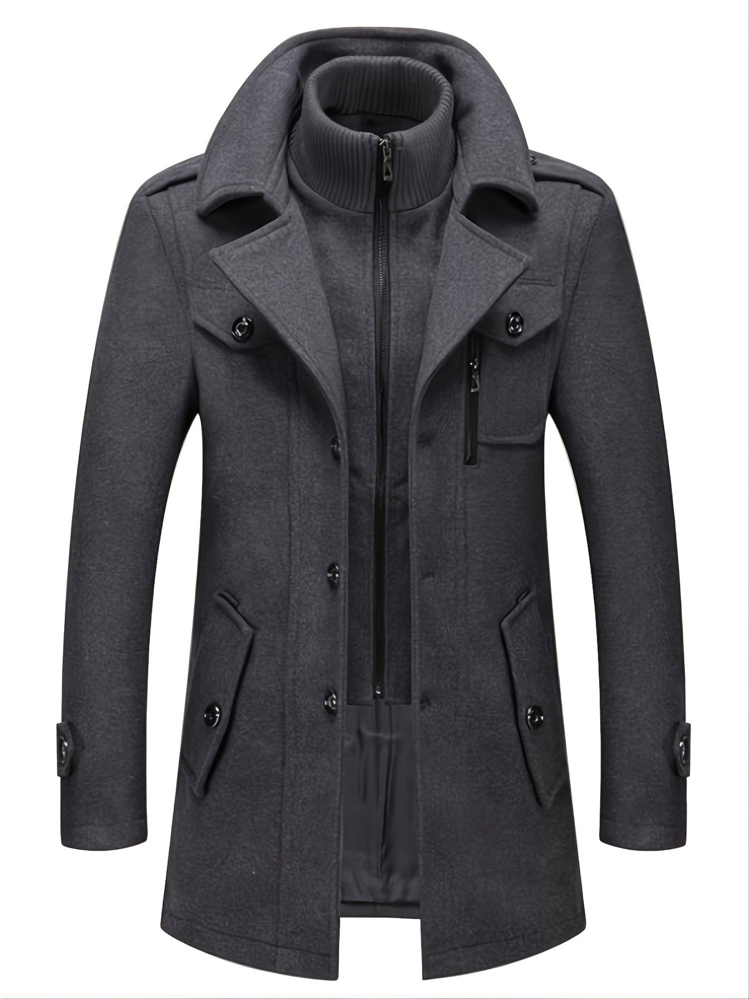 Timeless and Elegant: The dual collar style brings an element of elegance to your appearance. Comfortable and Snug: Constructed from premium wool, this coat of medium length will ensure warmth in the cold autumn and winter seasons. Adaptable and Functional: Ideal for both professional and informal events, this wool jacket is essential for your closet. Sturdy and Resilient: Designed with meticulous care, this coat is built to endure daily use.