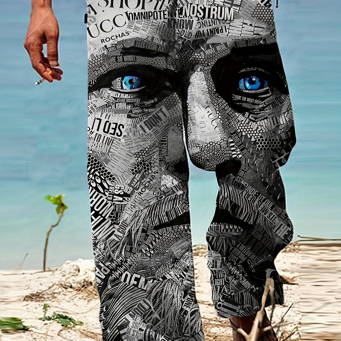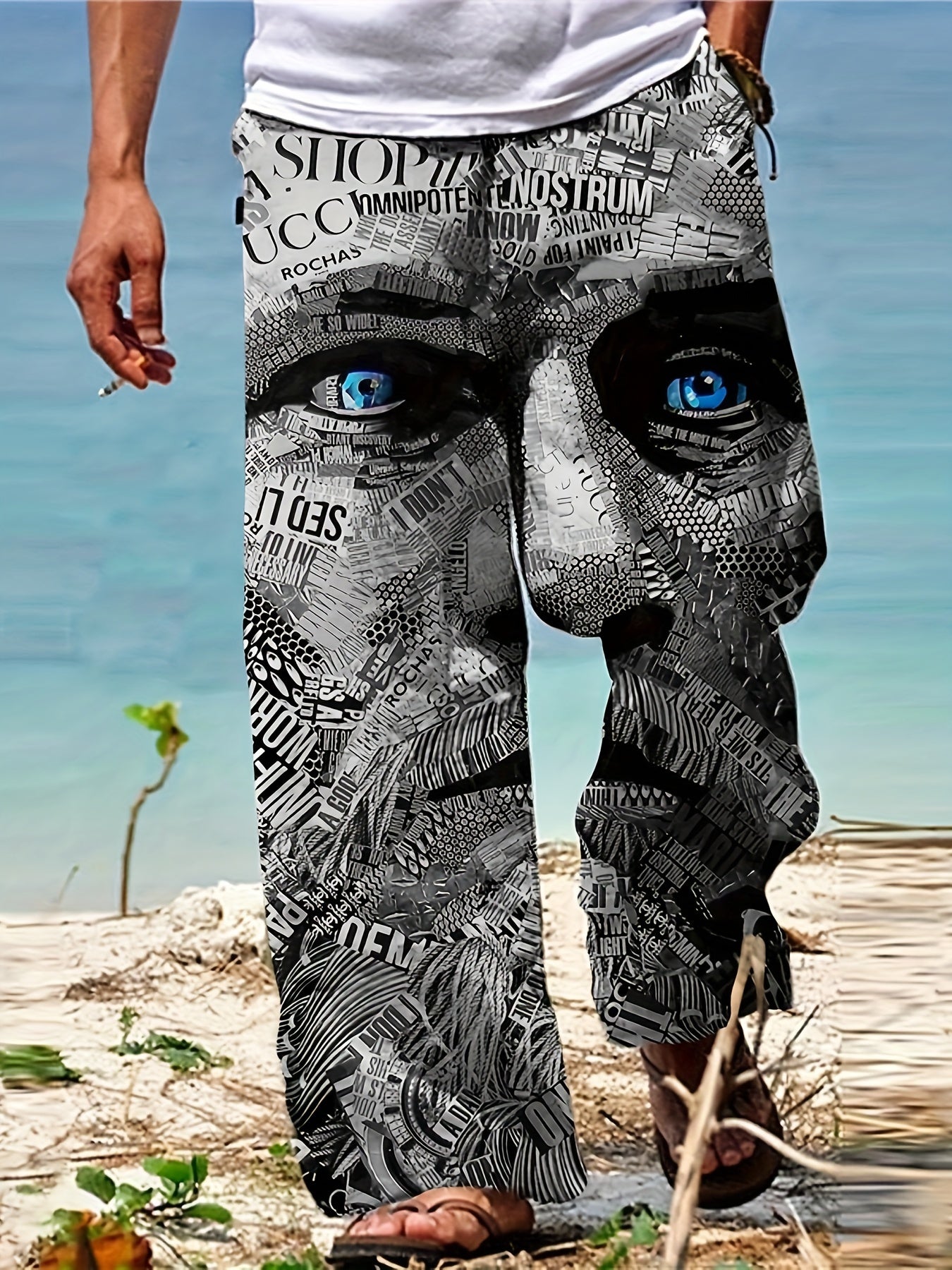 Men's Drawstring Wide Leg Pants Beach Pant Trendy Pattern Casual Baggy Pants Yoga Trousers Streetwear Hiphop Rapper Style, Fluid Pants