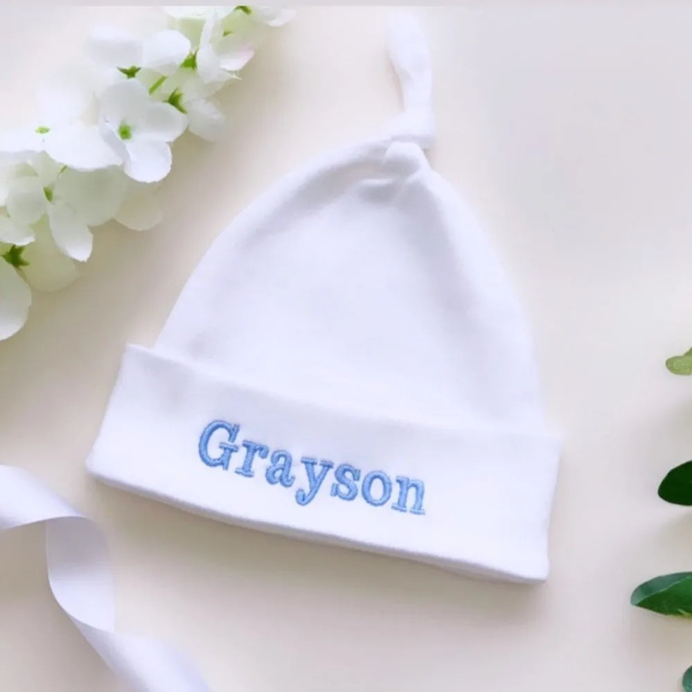Personalised Baby Hat Embroidered Knotted Baby Hat Baby Shower Gift Custom Name Baby Hat Newborn Baby Gift Newborn Baby Hat