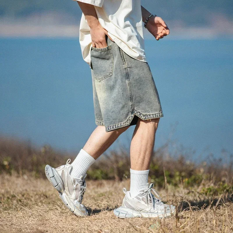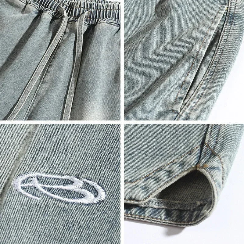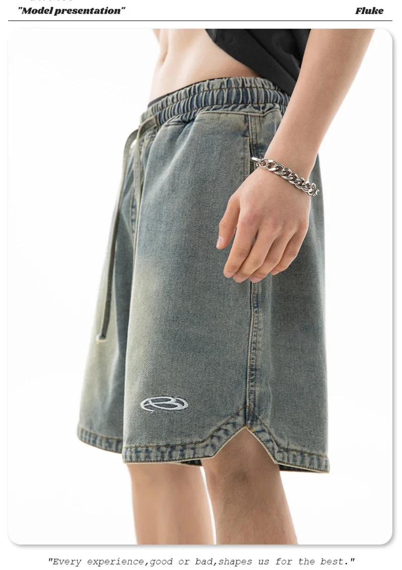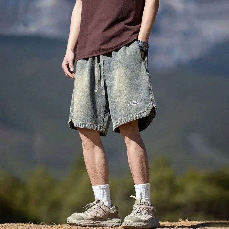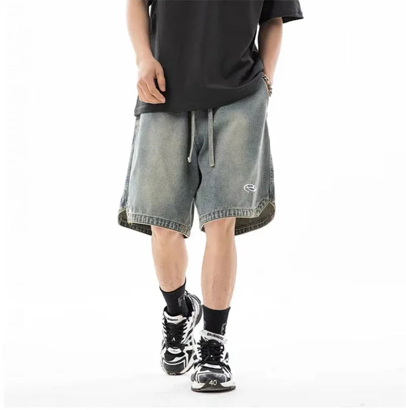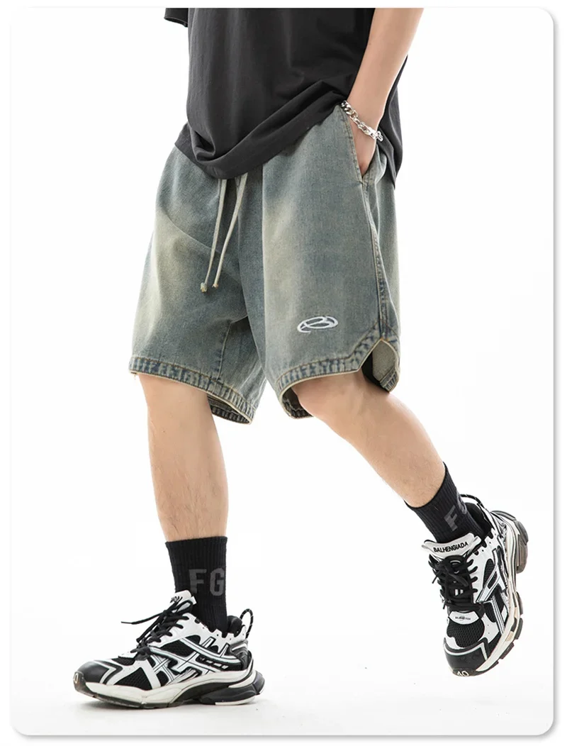 Summer Baggy Distressed Denim Pants For Men Basic Casual Streetwear Short Jeans Embroidery Hip Hop Fashion Y2K Bermuda Shorts