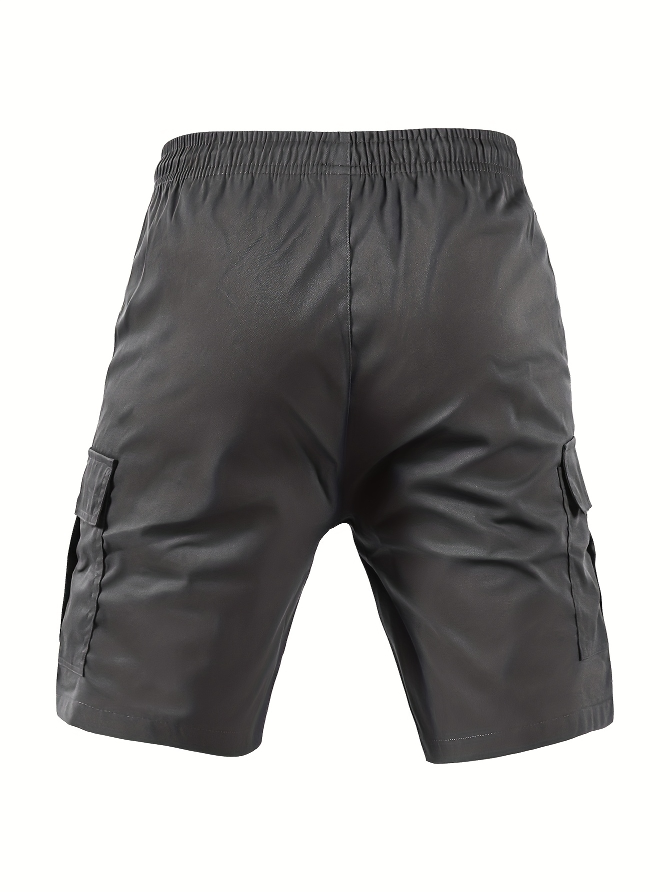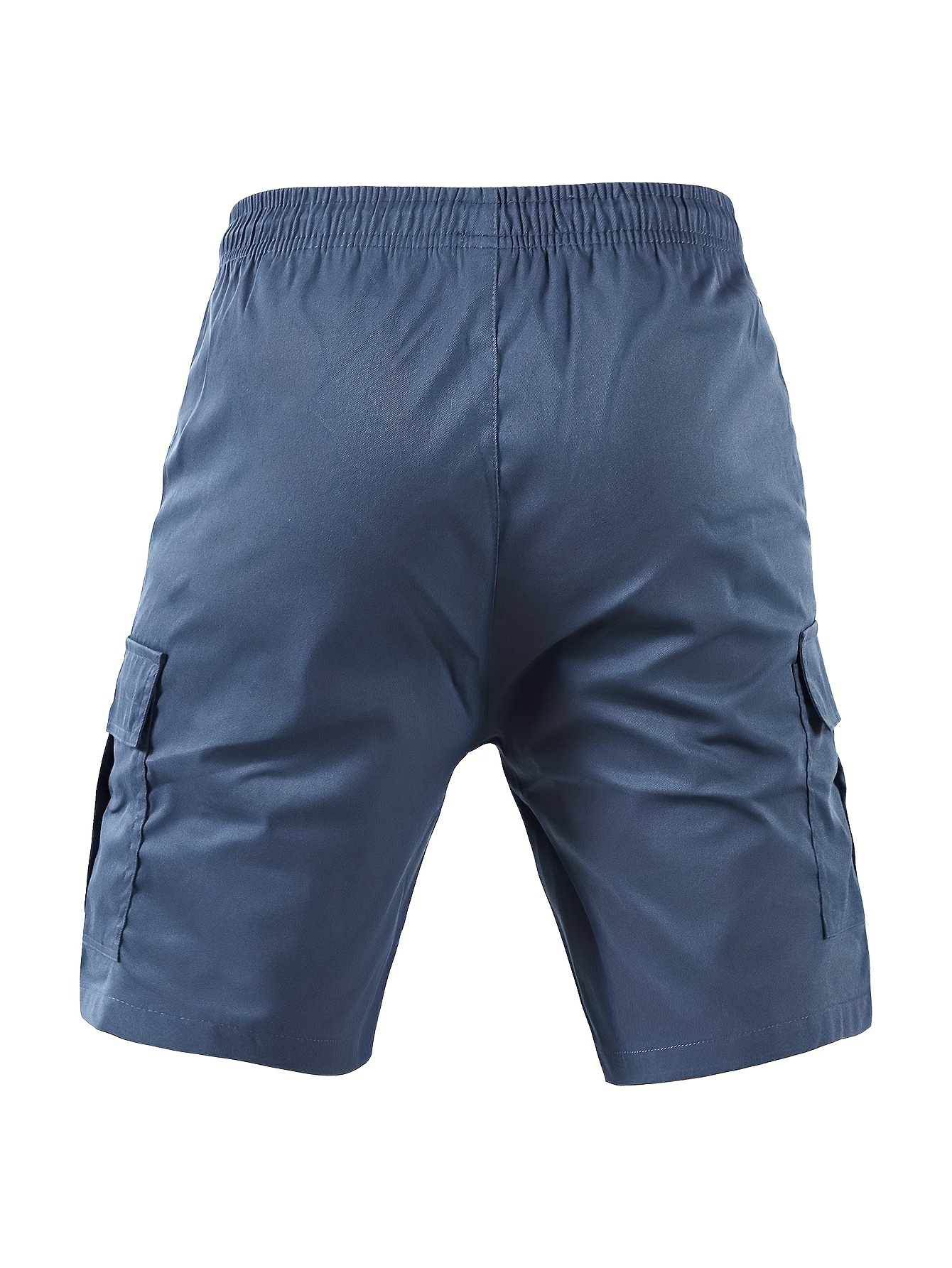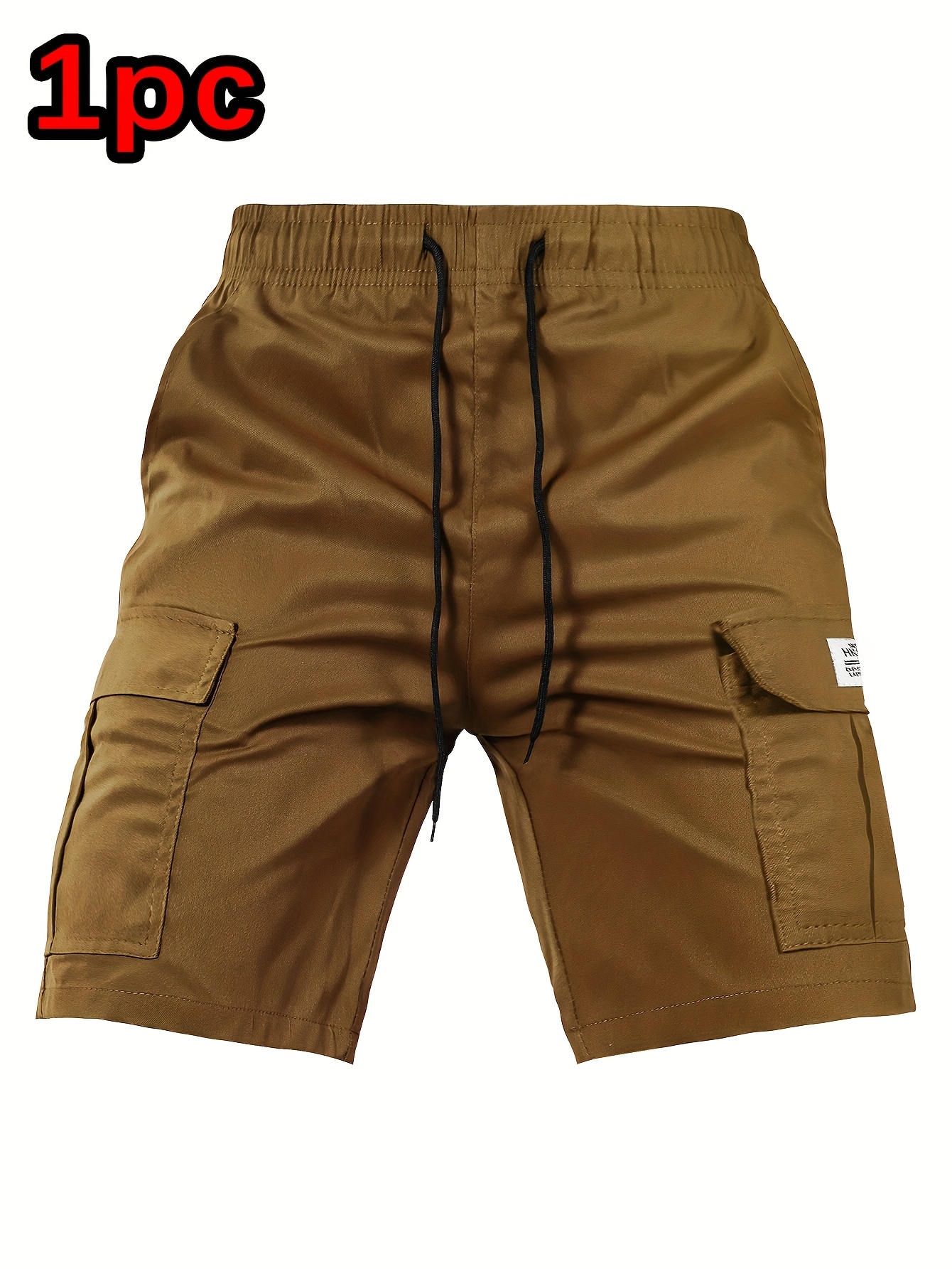 [Summer Cargo Shorts] Breathable Polyester Men's Casual Cargo Shorts with Drawstring Waist, Flap Pockets & Letter Patch | Regular Fit, Solid Color for Summer