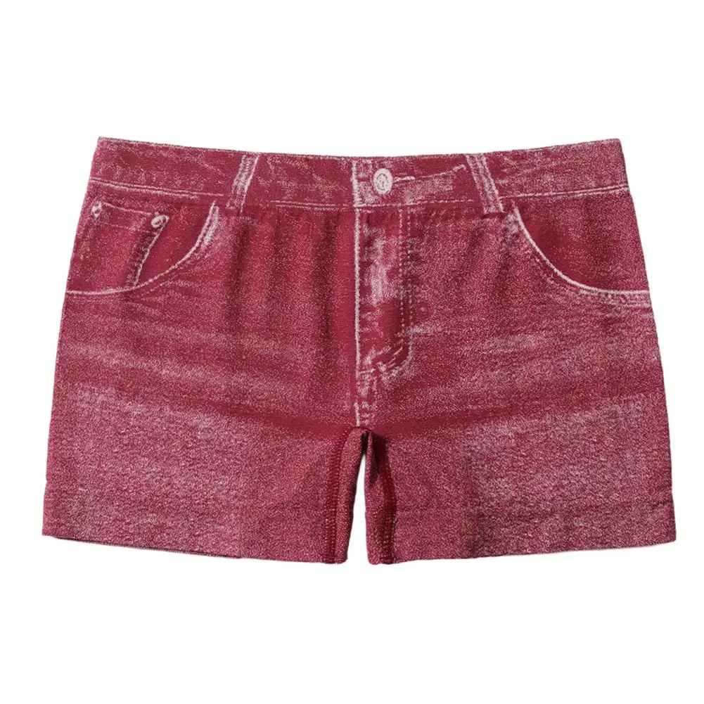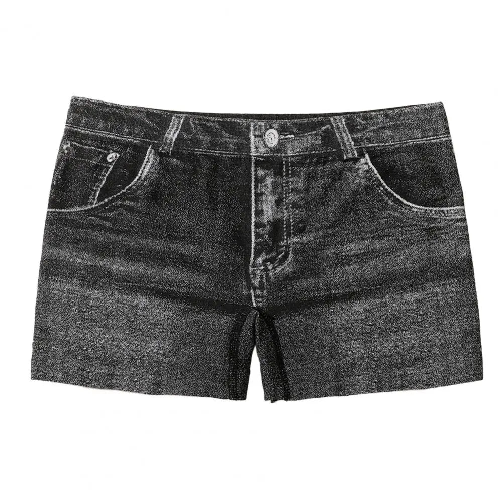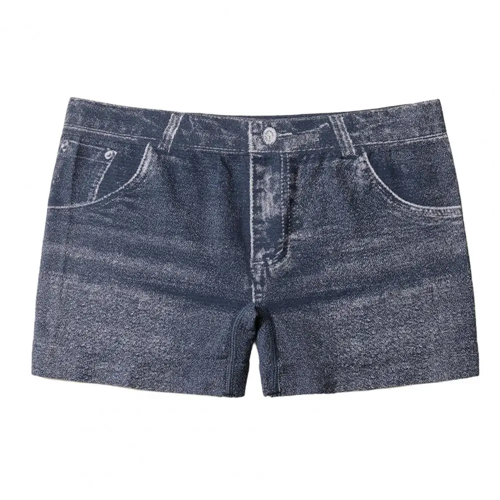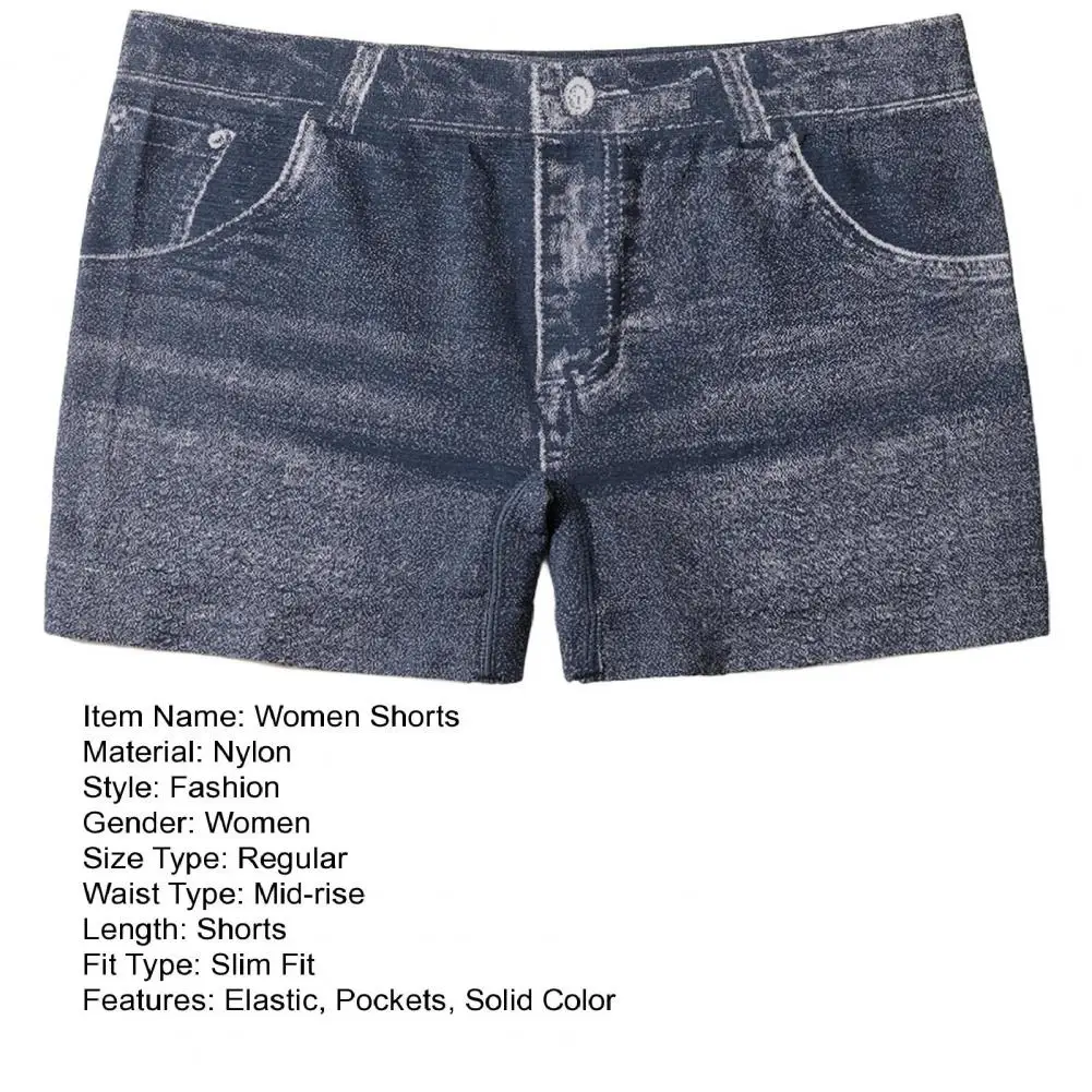 Women Shorts High Stretchy Imitation Denim Short Leggings with Pockets Tight Fitting Summer Shorts Daily Wear