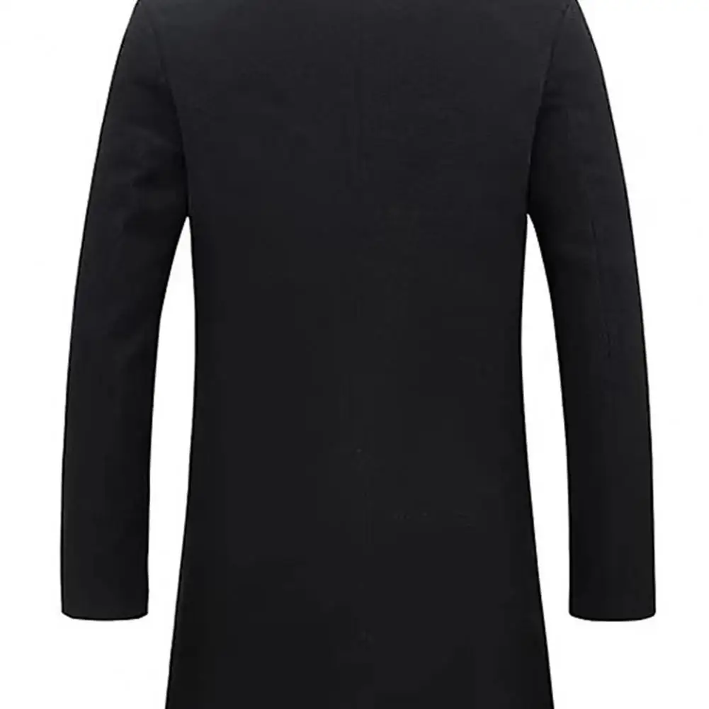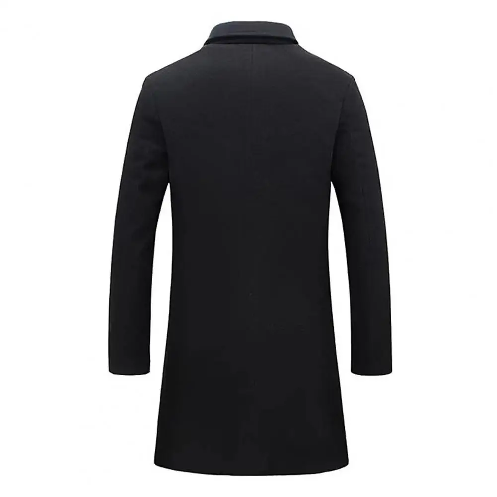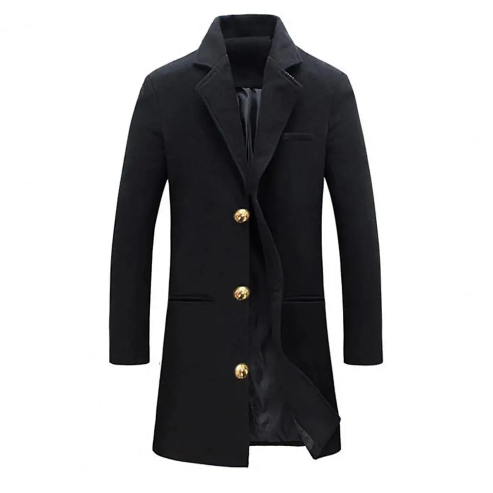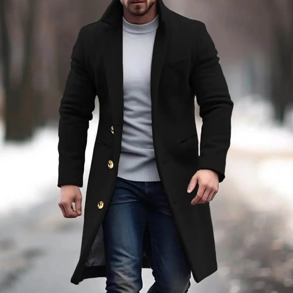 Woolen Coat Men Jacket Elegant Men's Woolen Coat with Lapel Pockets Single Breasted Long Sleeve Jacket Solid Color for Winter